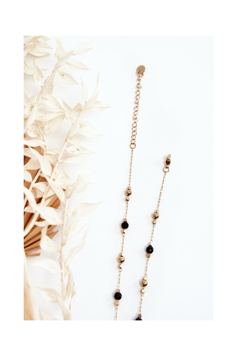 Naistelikk kaelakee mustade helmestega kuldse värviga