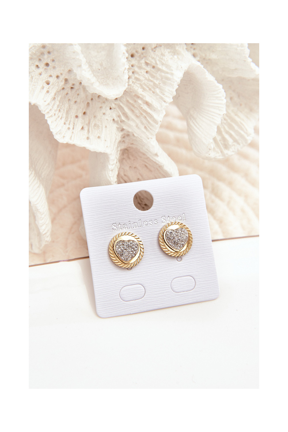Golden Stainless Steel Heart and Circle Earrings