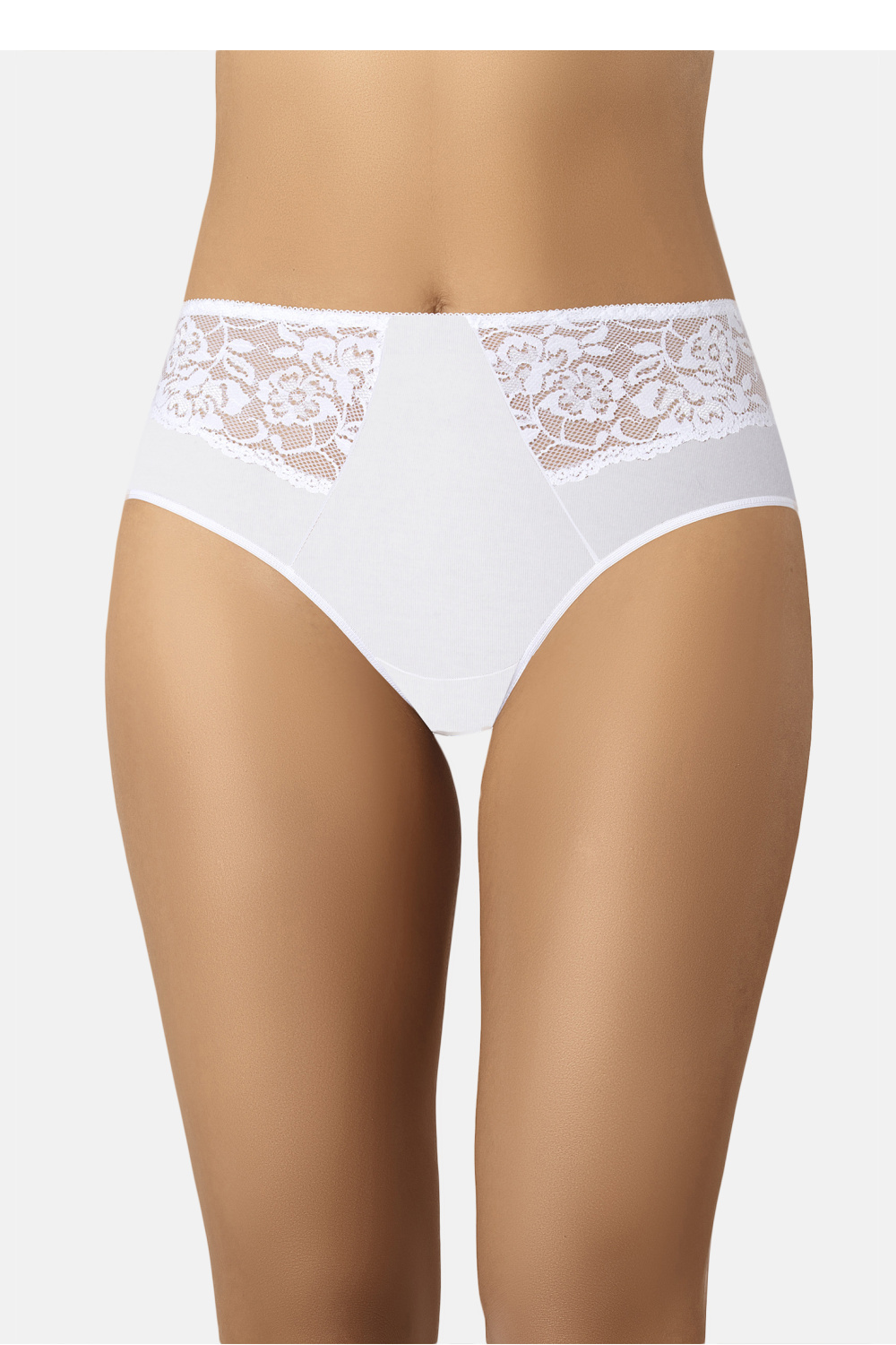 Puuvill panties with a classic cut made of very good quality material, high in white color. In the front, the panties are made of nice cotton and lace with a floral motif. The whole composition is beautiful, giving a pleasant appearance to the female eye. The lace at the top on the sides is very delicate and elegant. The back of the panties is full, covering the entire buttocks. Around the legs, there is a non-compressive little rubber band, thanks to which the panties will be invisible under tight clothing. For increased personal hygiene and comfort, Teyli has used double cotton lining in the crotch. Light, compact and airy cotton ensures freshness, comfort, and well-being for women all day long. Thanks to the fact that the panties have a high waist, they perfectly cover the silhouette flaws and hide the stomach. They are adKleited to every woman, regardless of age.