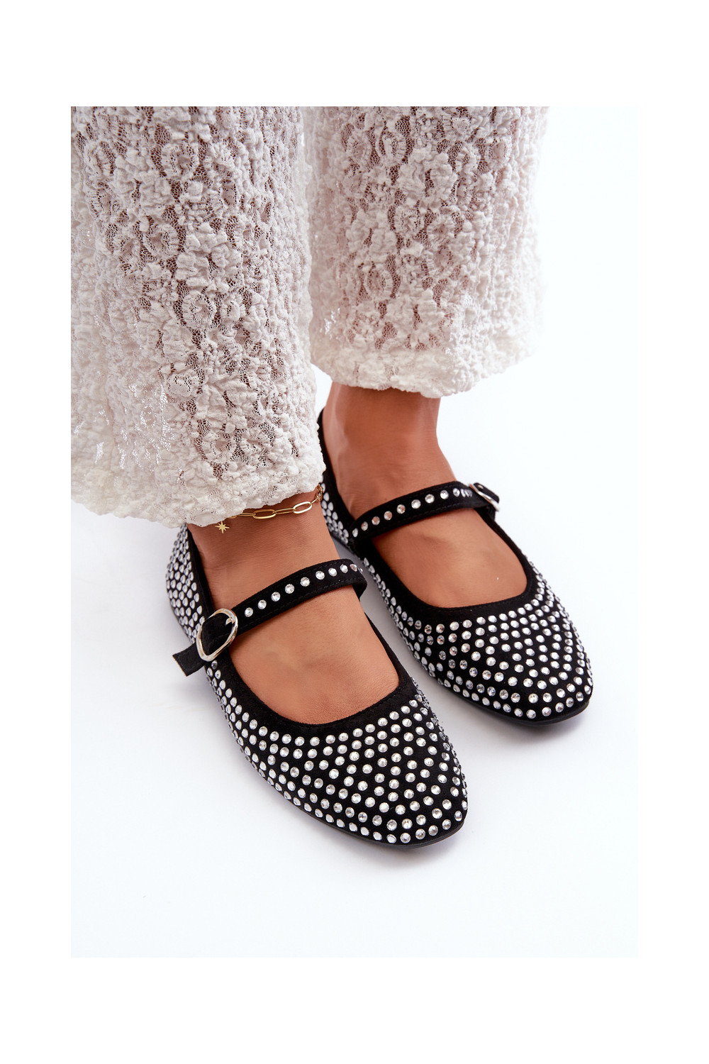 Mustad kunstnahast balletikingad, kaunistatud kristallidega Tinara