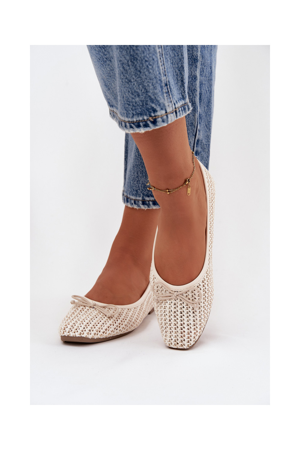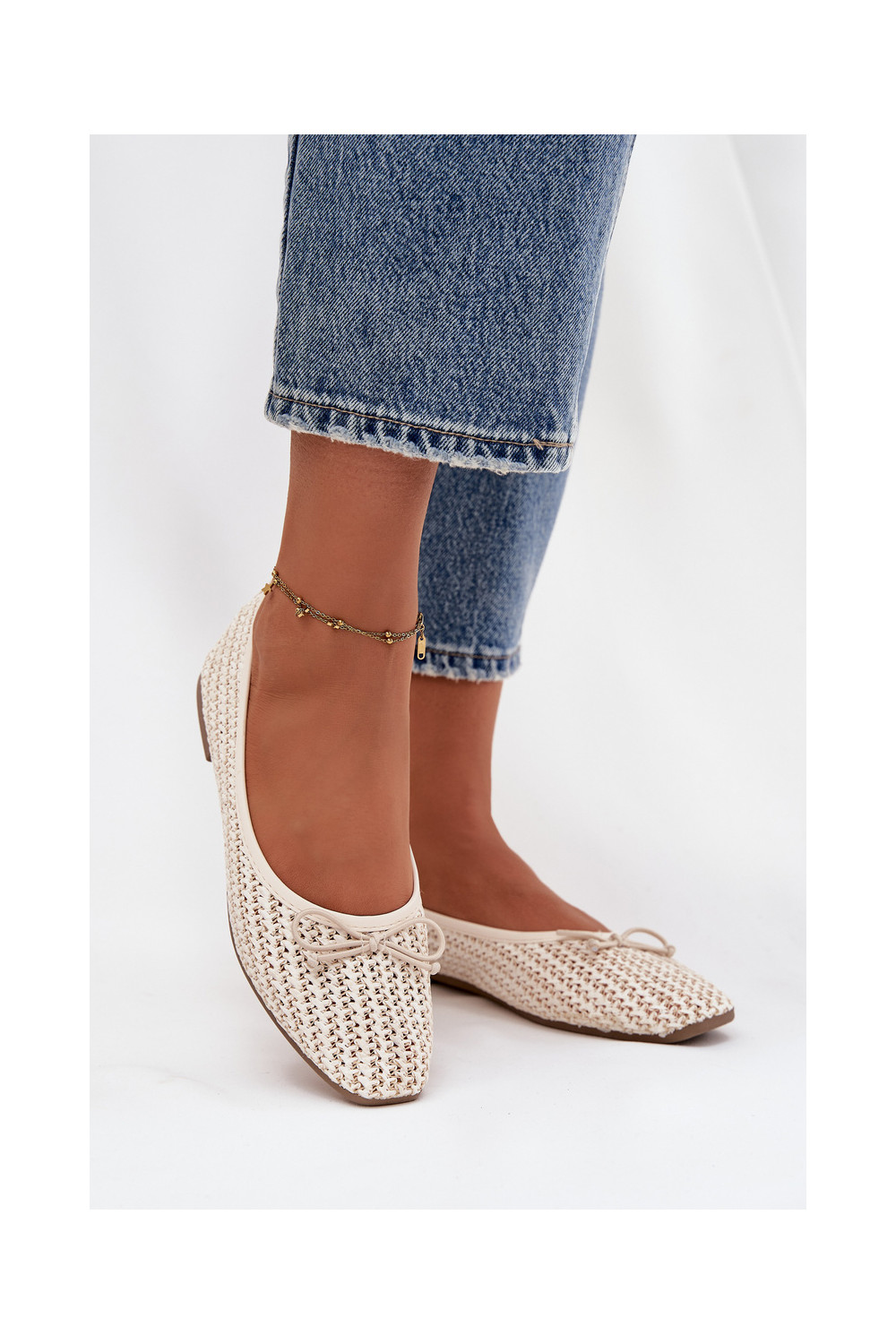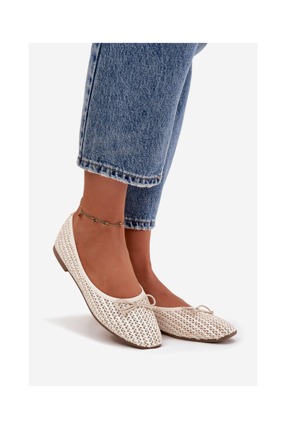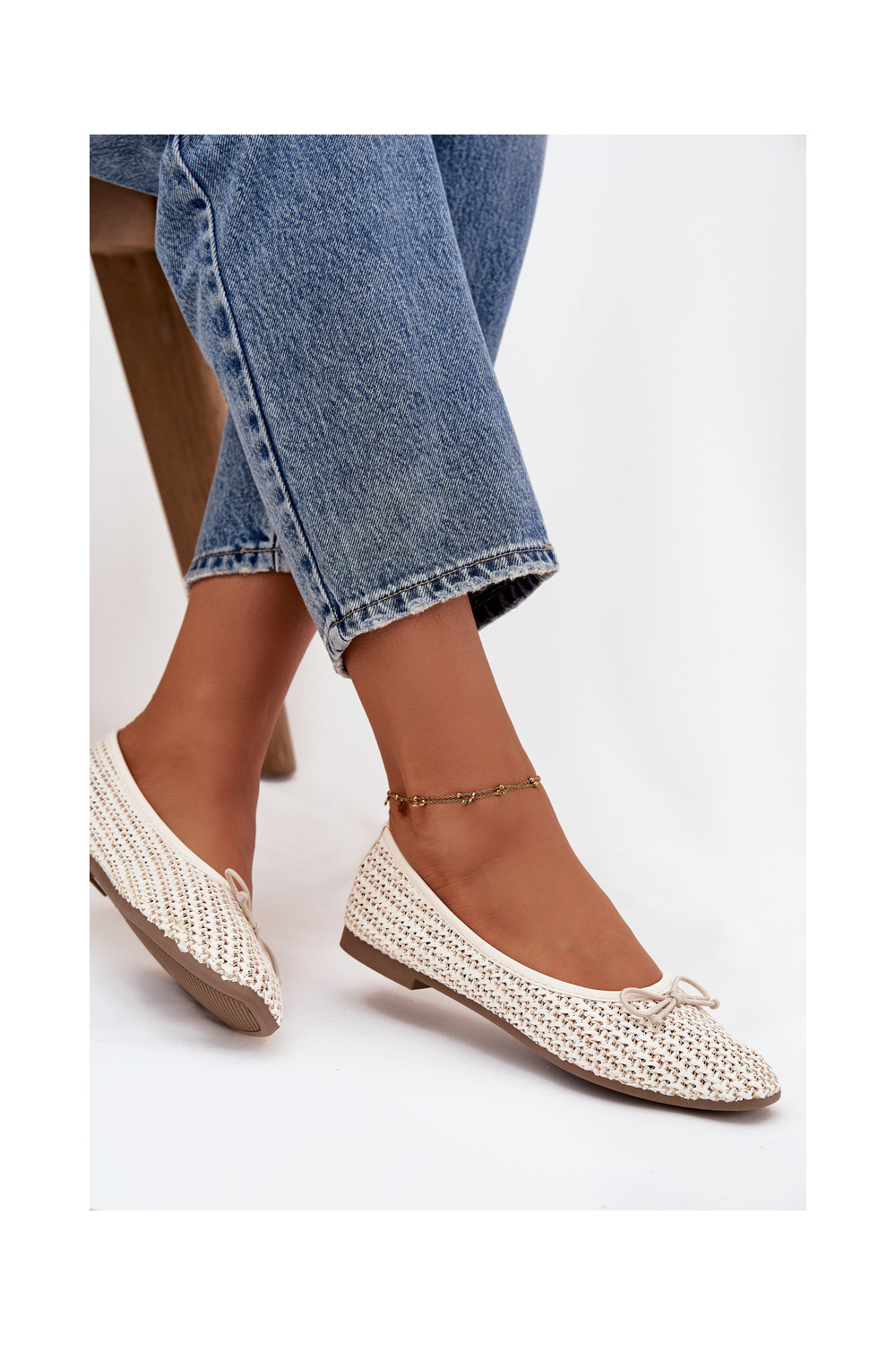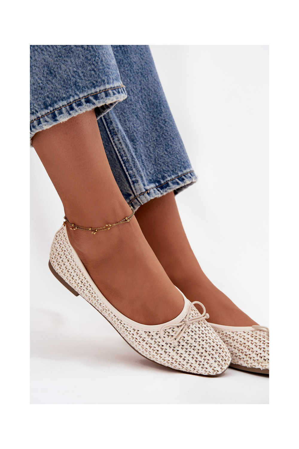 Ballet Flats With Weaving And Bow Ecru Belirra