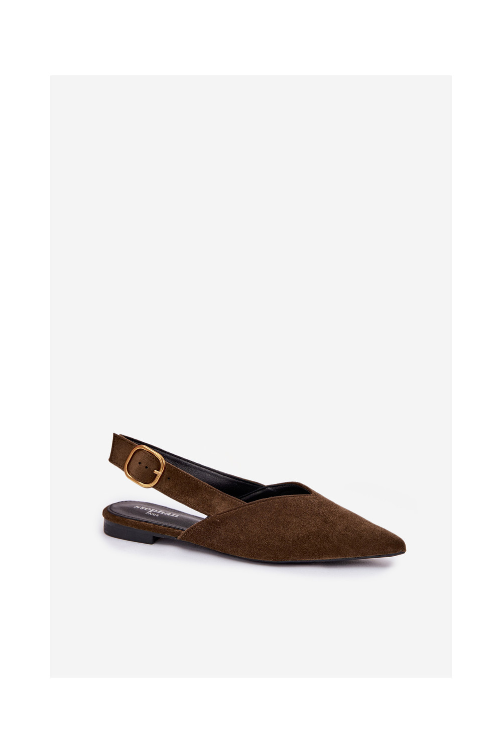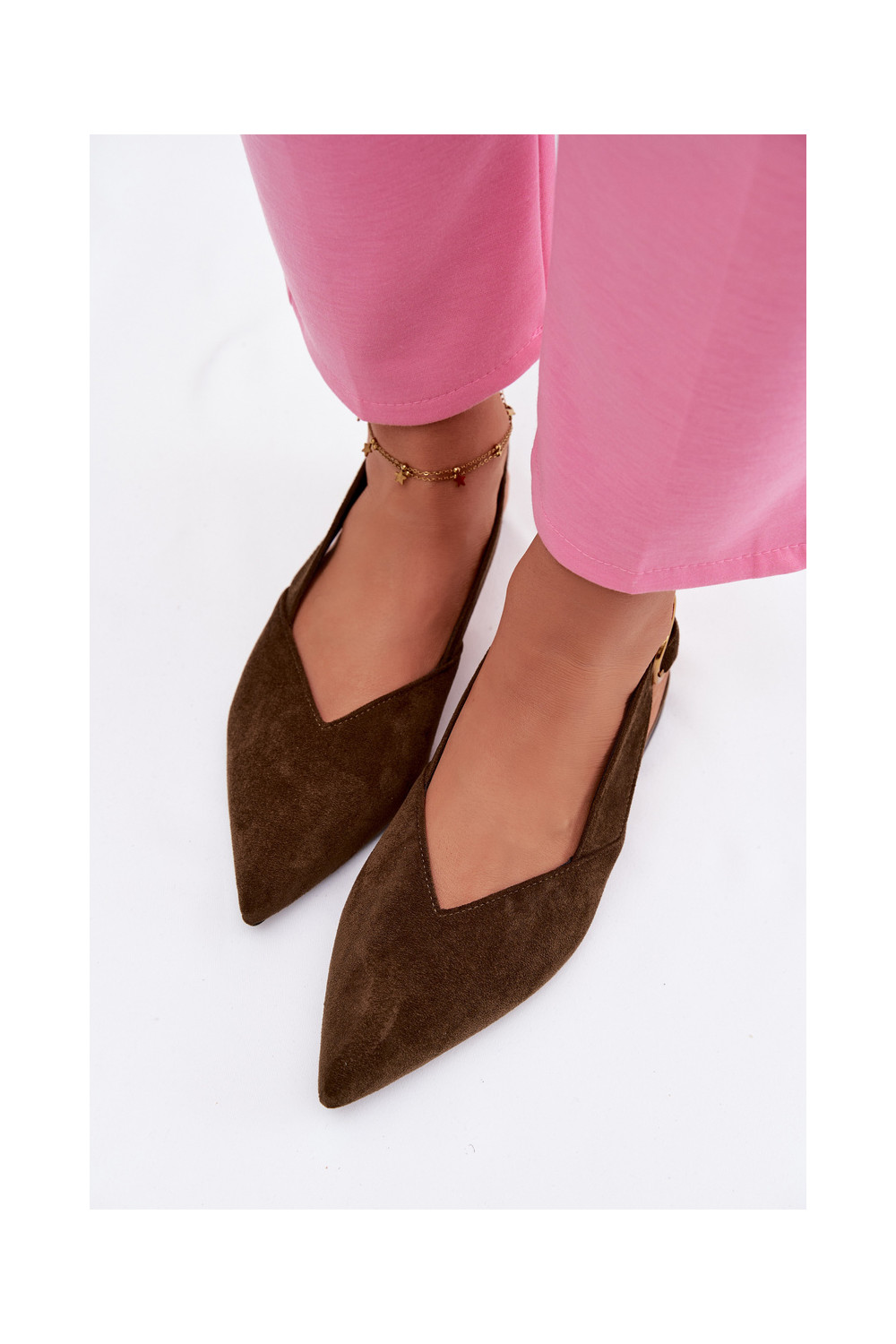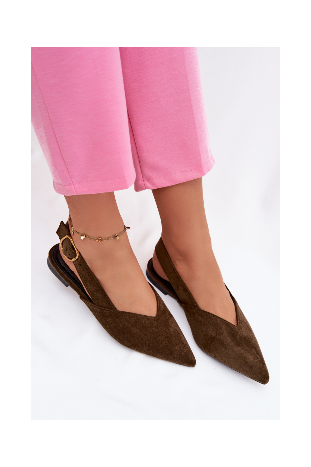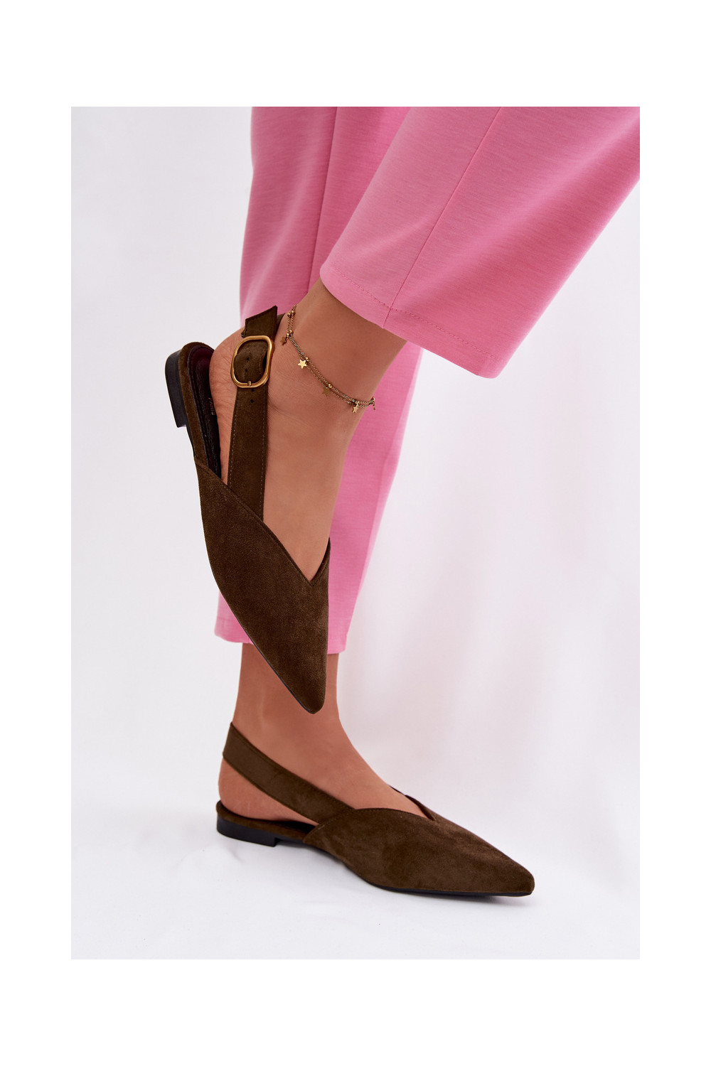 Olive Eco Suede Ballerinas With Gold Buckle Palerra