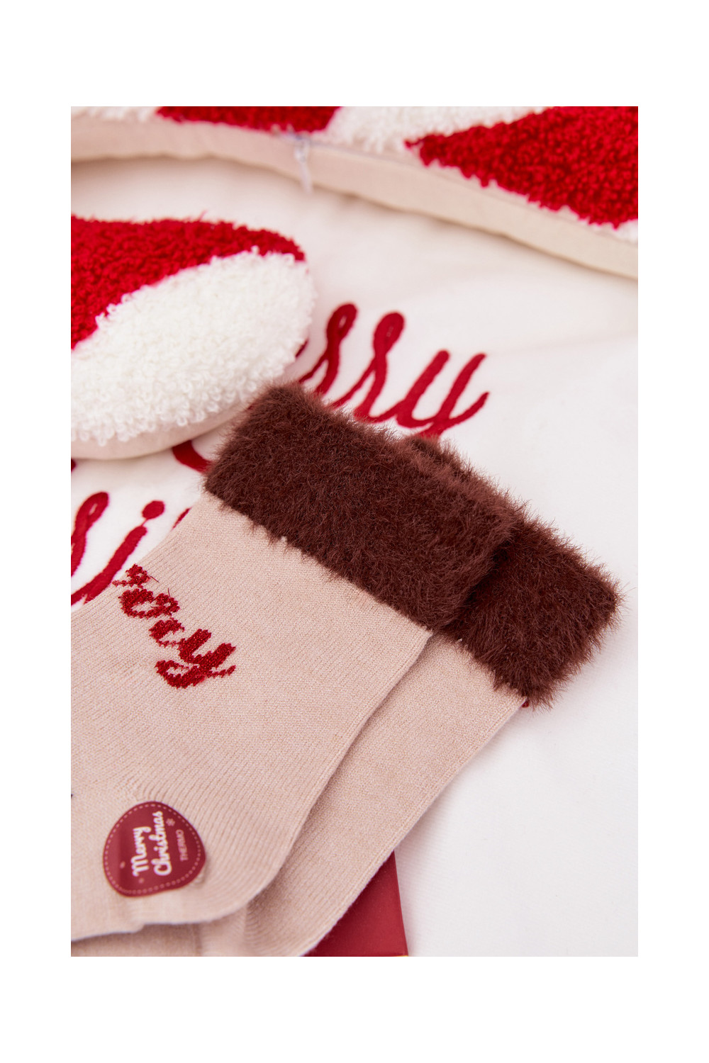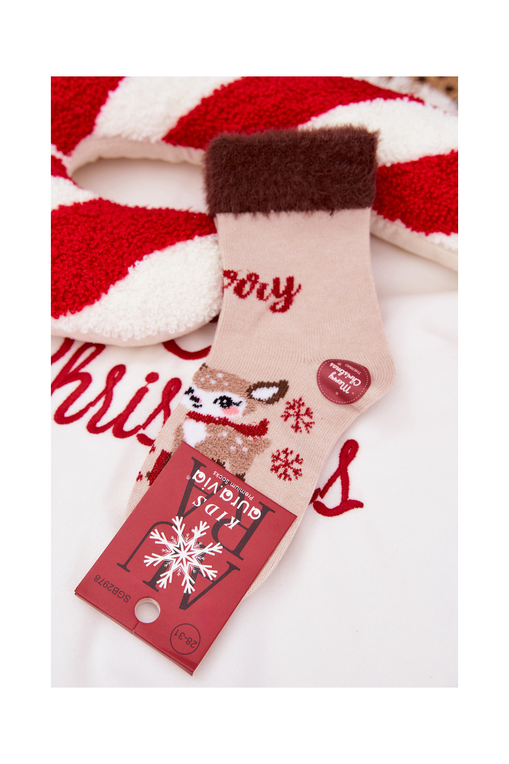 Jõulusokid Laste jalanõud karusnahaga Ja põhjapõder INełna Alpaka beeži värvi