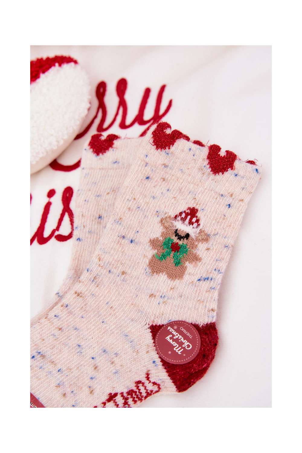 Children's Christmas Socks With Bear And Hearts Alpaca Wool Beige