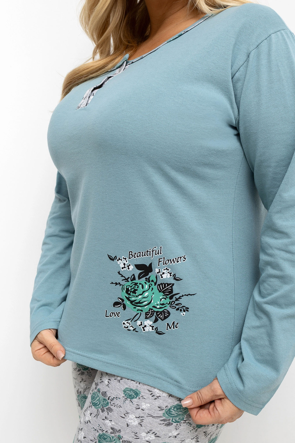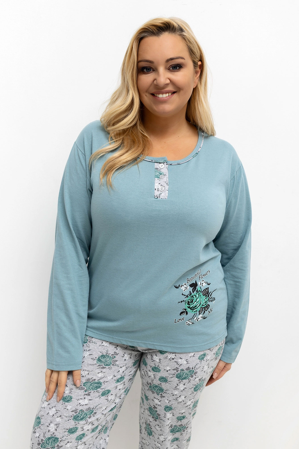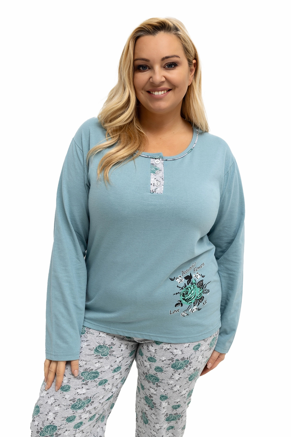 Pidzama mõõdud suuruses XL, mõõdetud venitatult: pluus: laius kaenla all - 56 cm, varruka pikkus - 58 cm, kogu pikkus - 69 cm, alaosa laius - 56 cm, püksid: vöökoha laius - 29 cm (venitatult), vöökoha laius - 62 cm (venitatud), puusade laius - 57 cm, kogu pikkus - 97 cm.