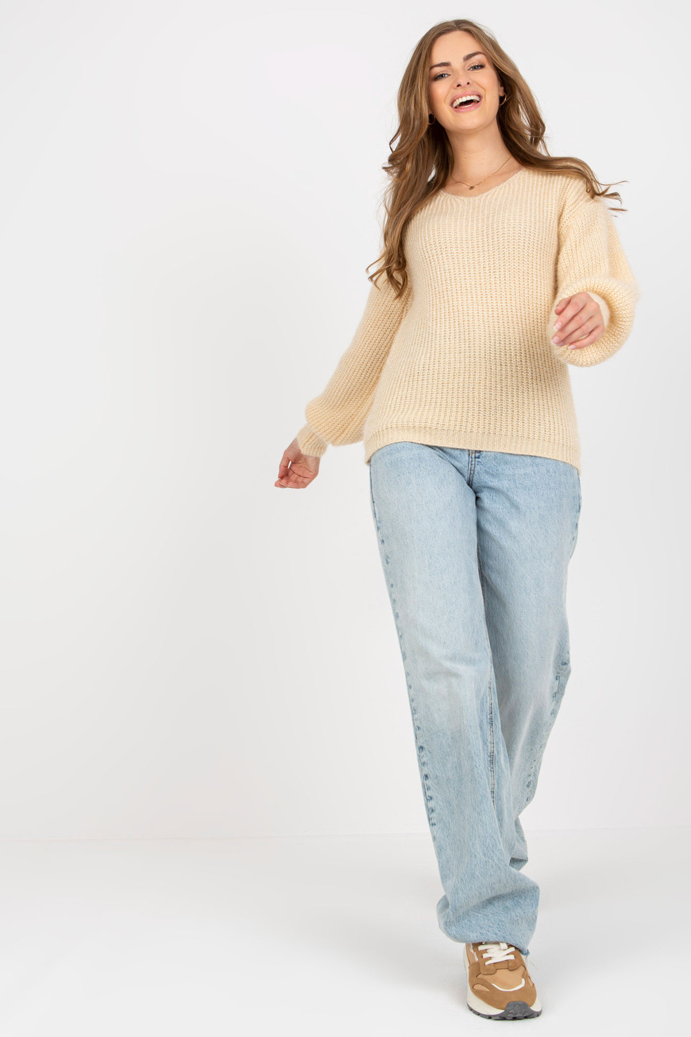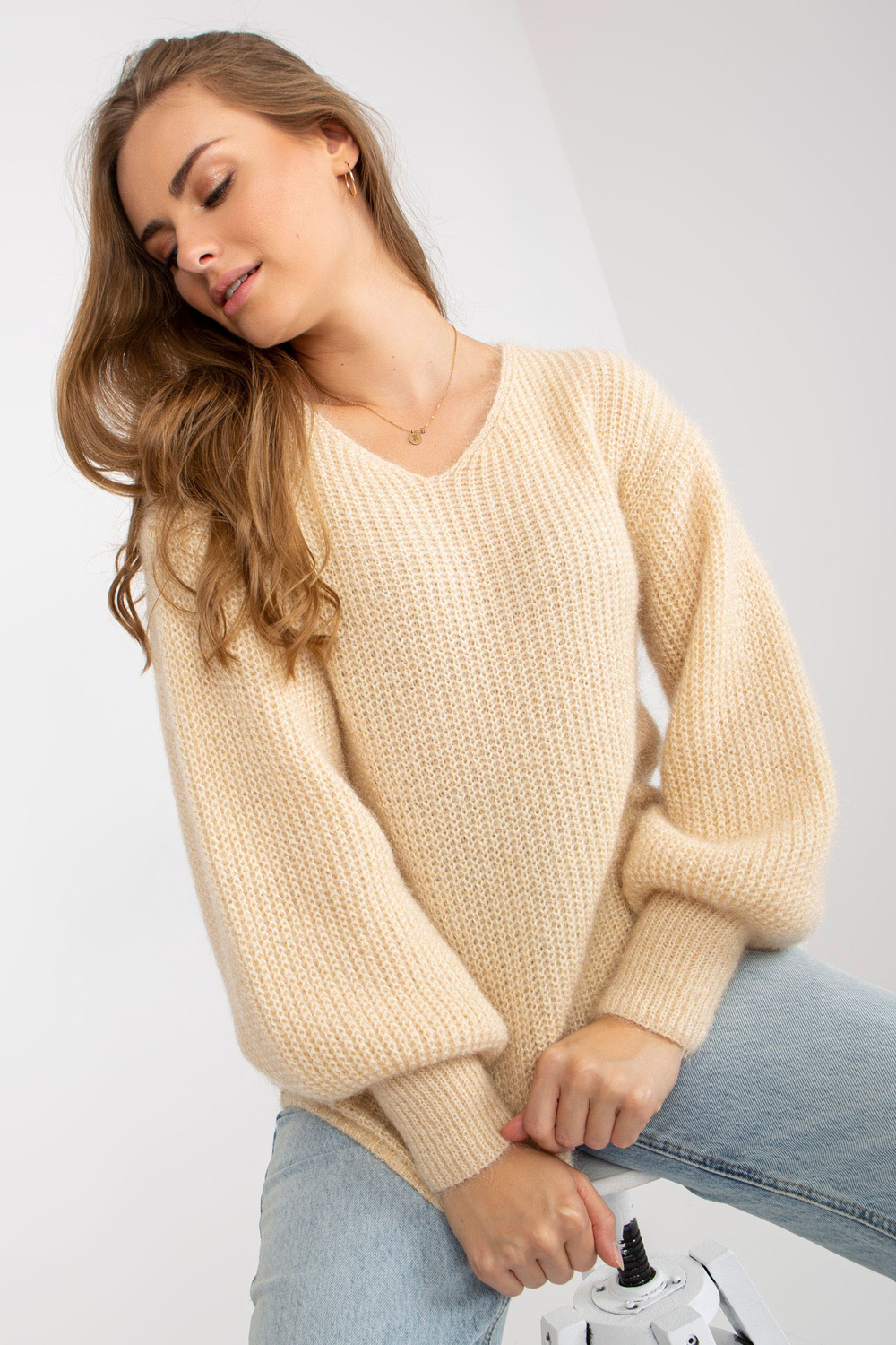 Beež kohev klassikaline V-kaelusega kampsun OCH BELLA .