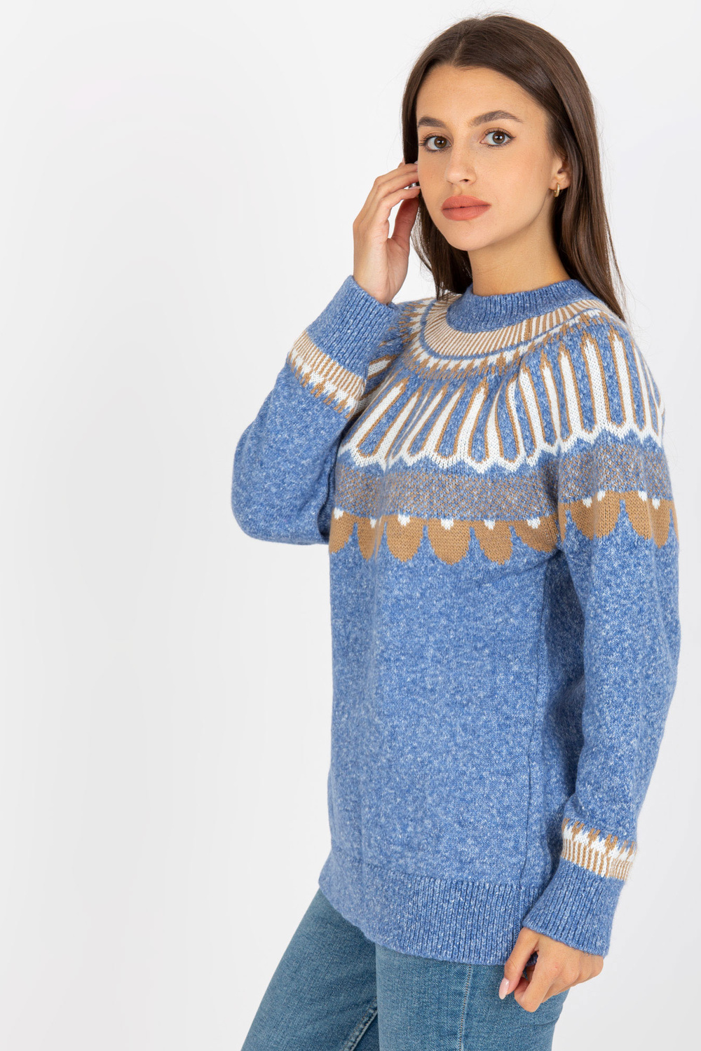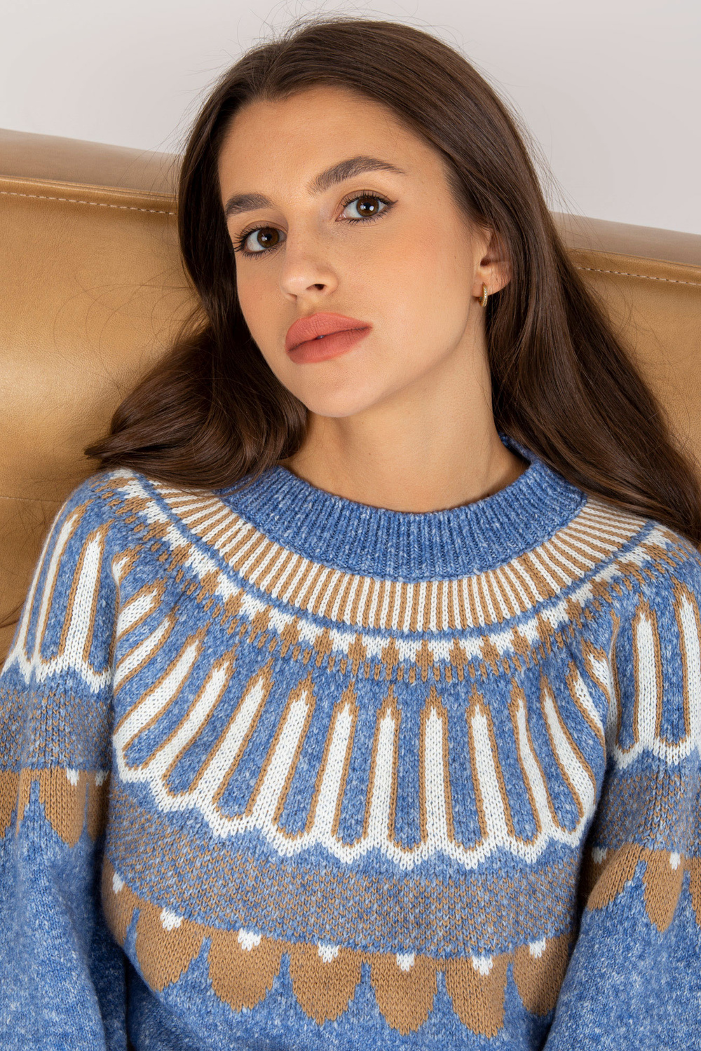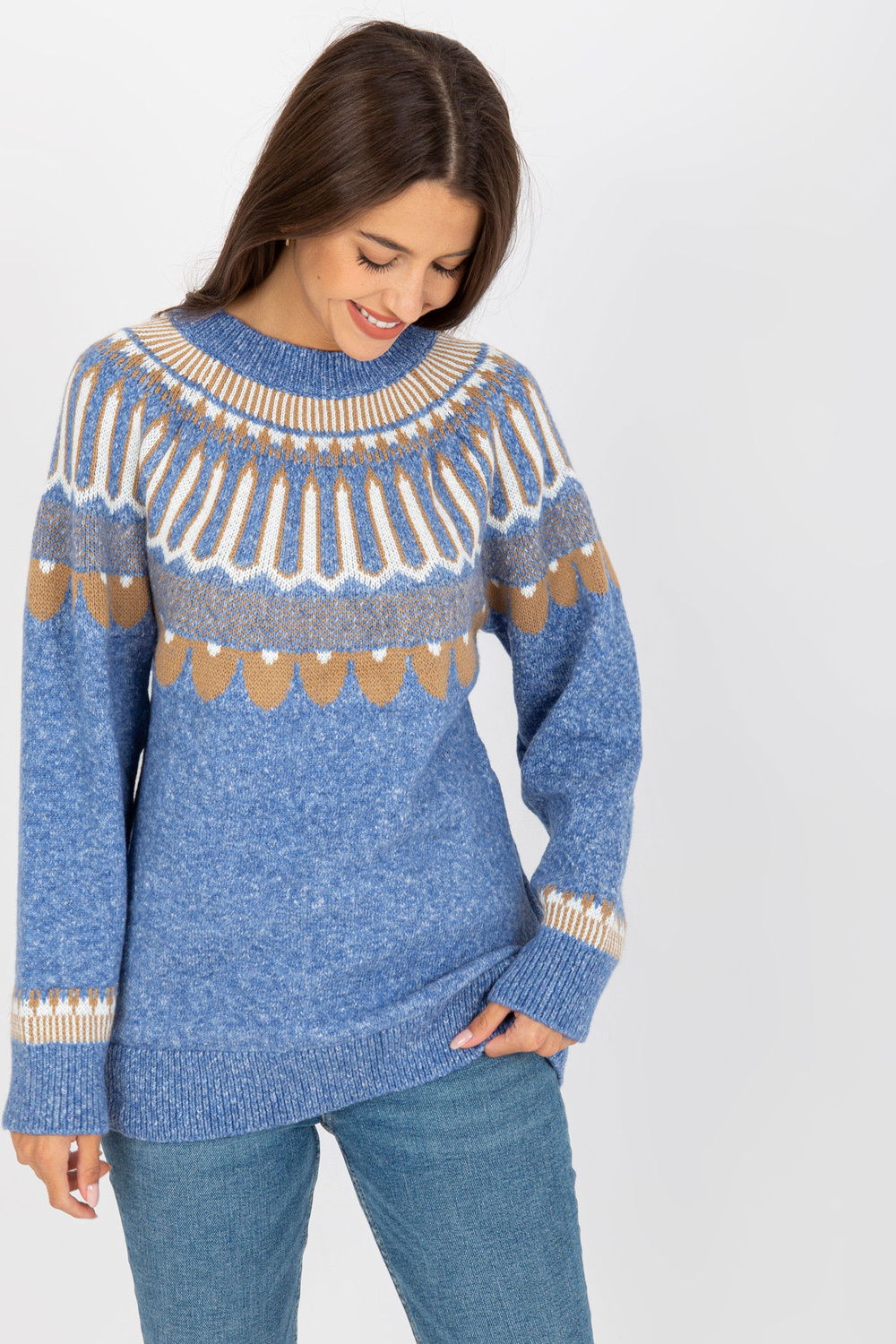 RUE PARIS mustritega sinine klassikaline kampsun .