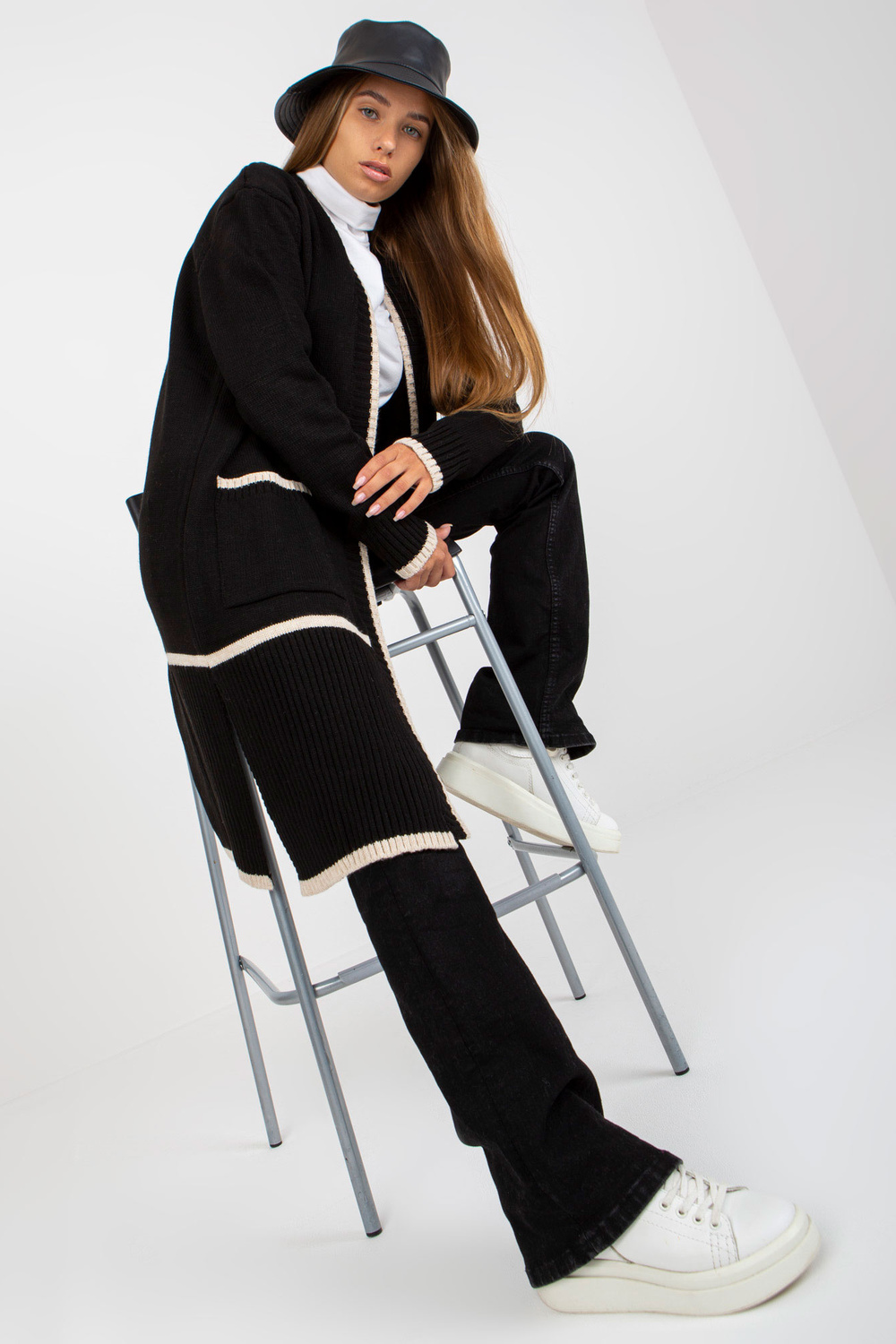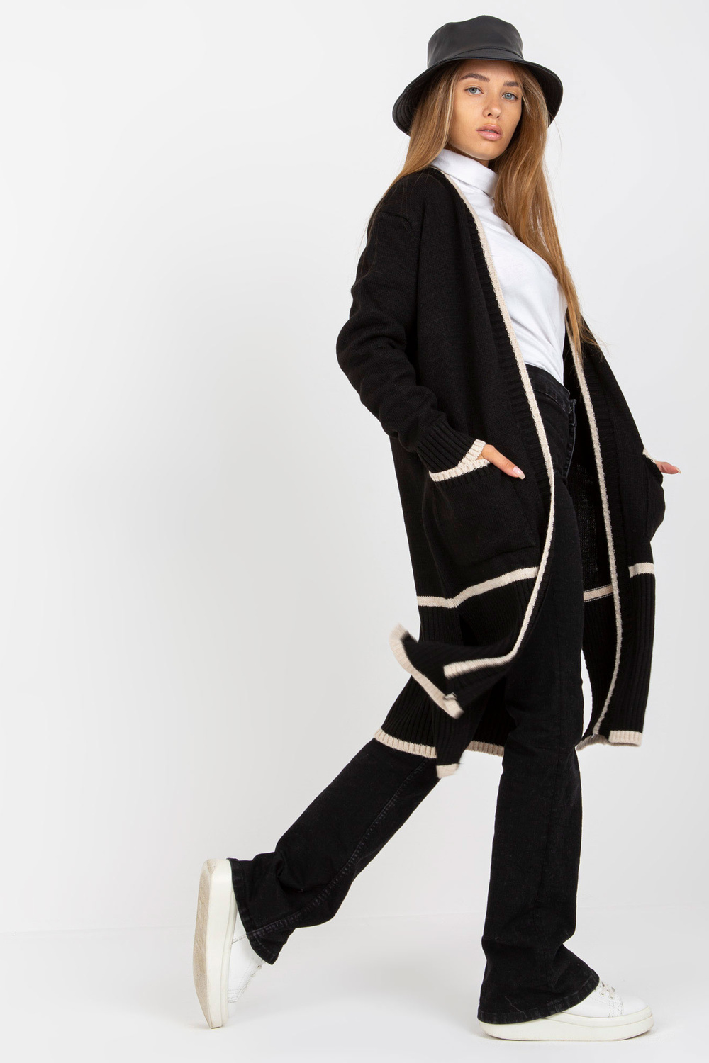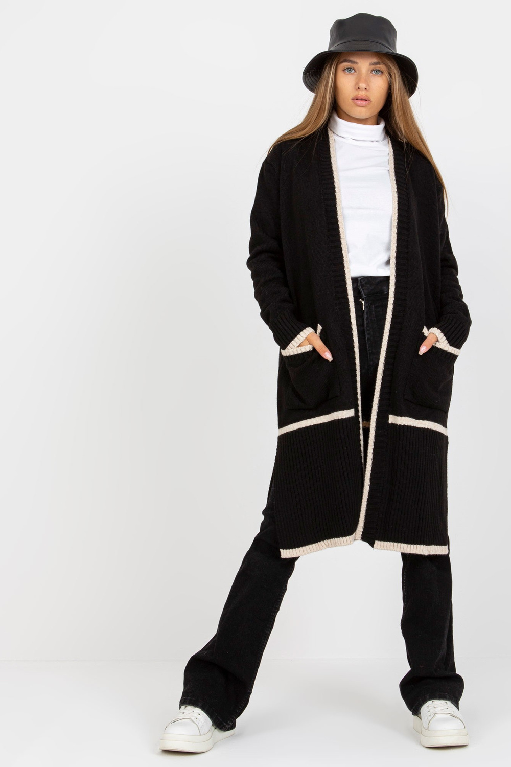 Must-beež pikk ilma lukuta kardigan RUE PARIS .