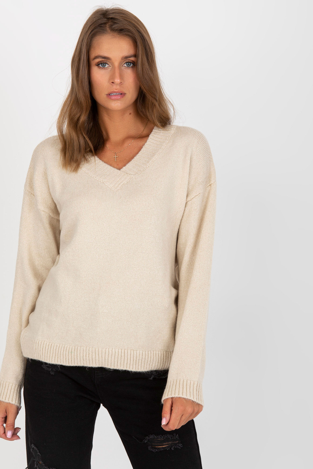 Beež klassikaline V-kaelusega kampsun RUE PARIS