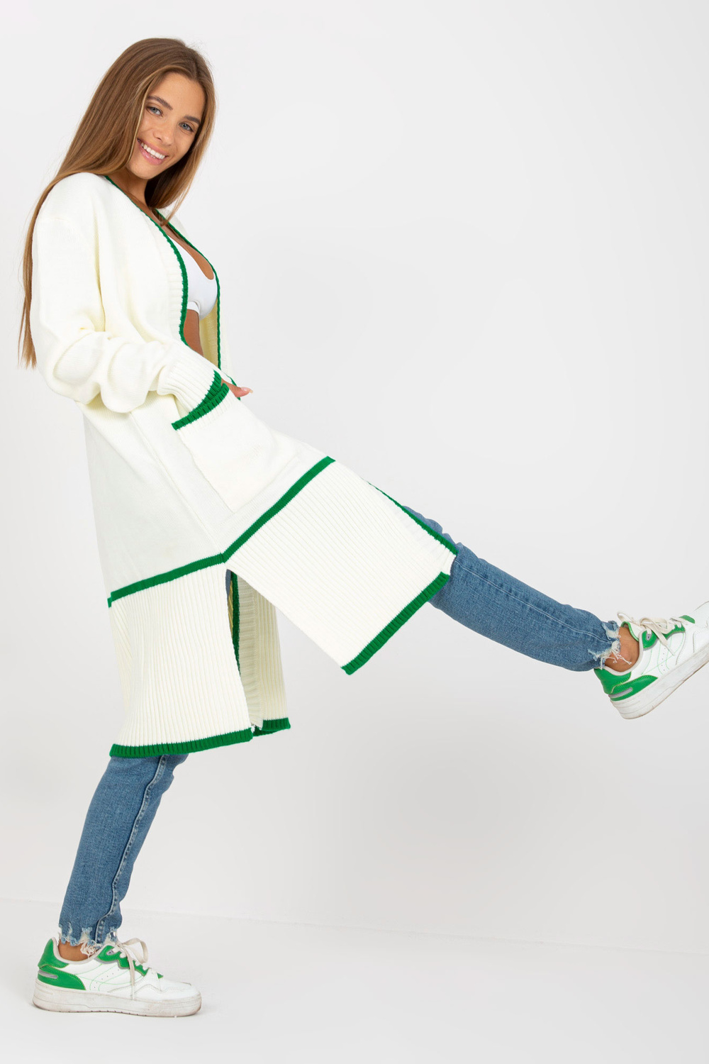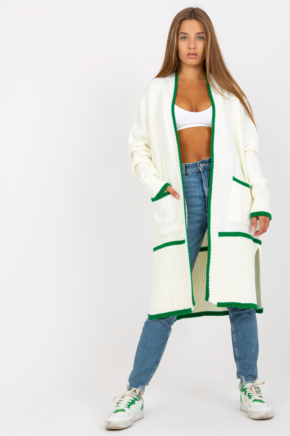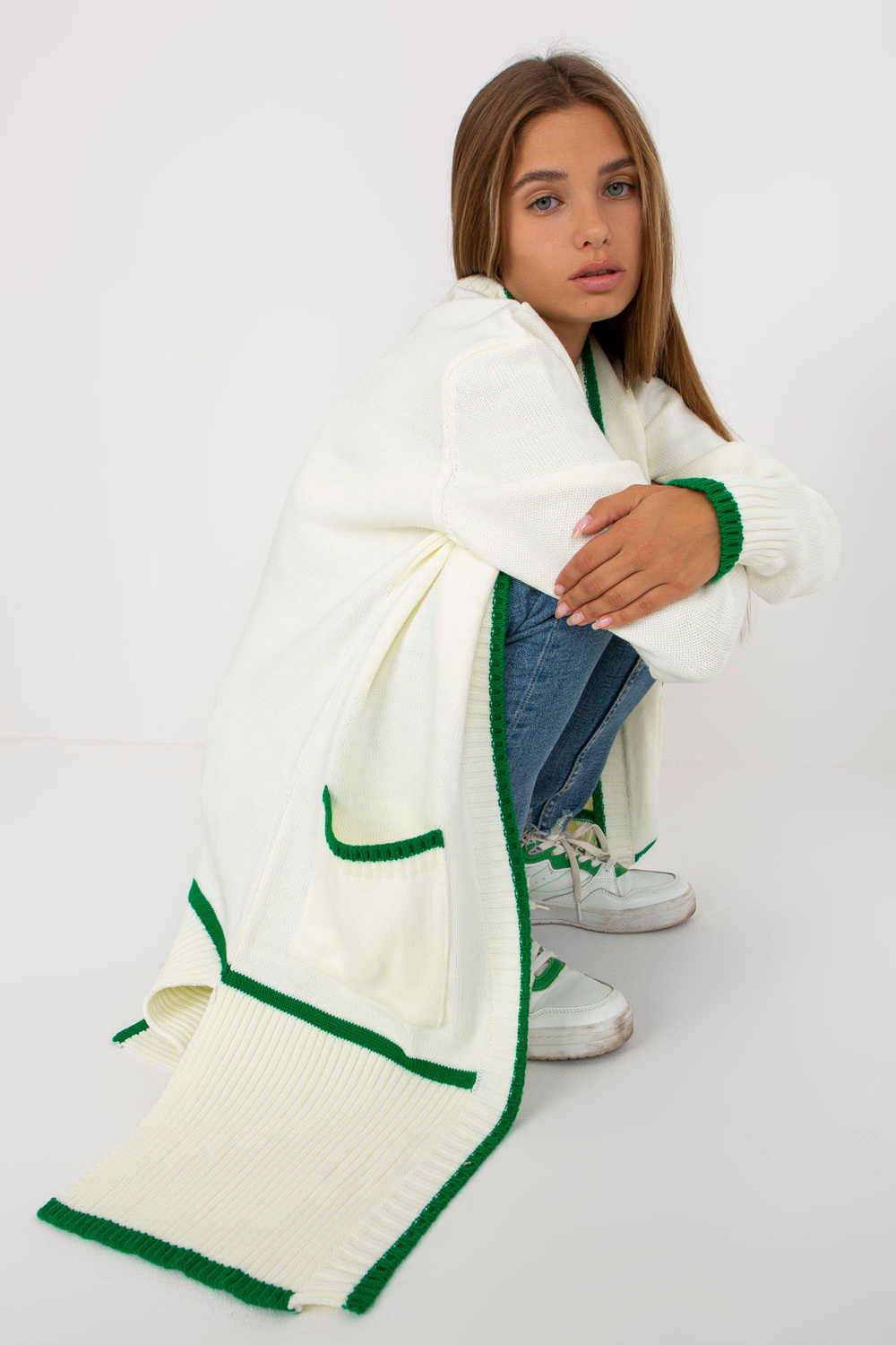 Ecru-roheline taskutega lahtine kardigan RUE PARIS