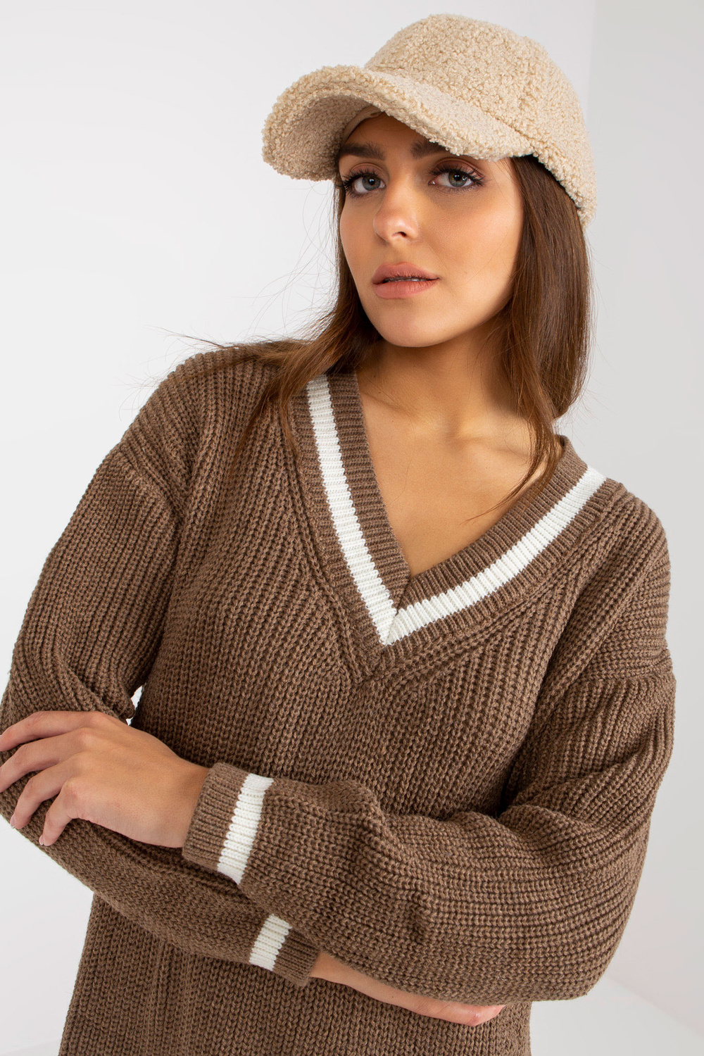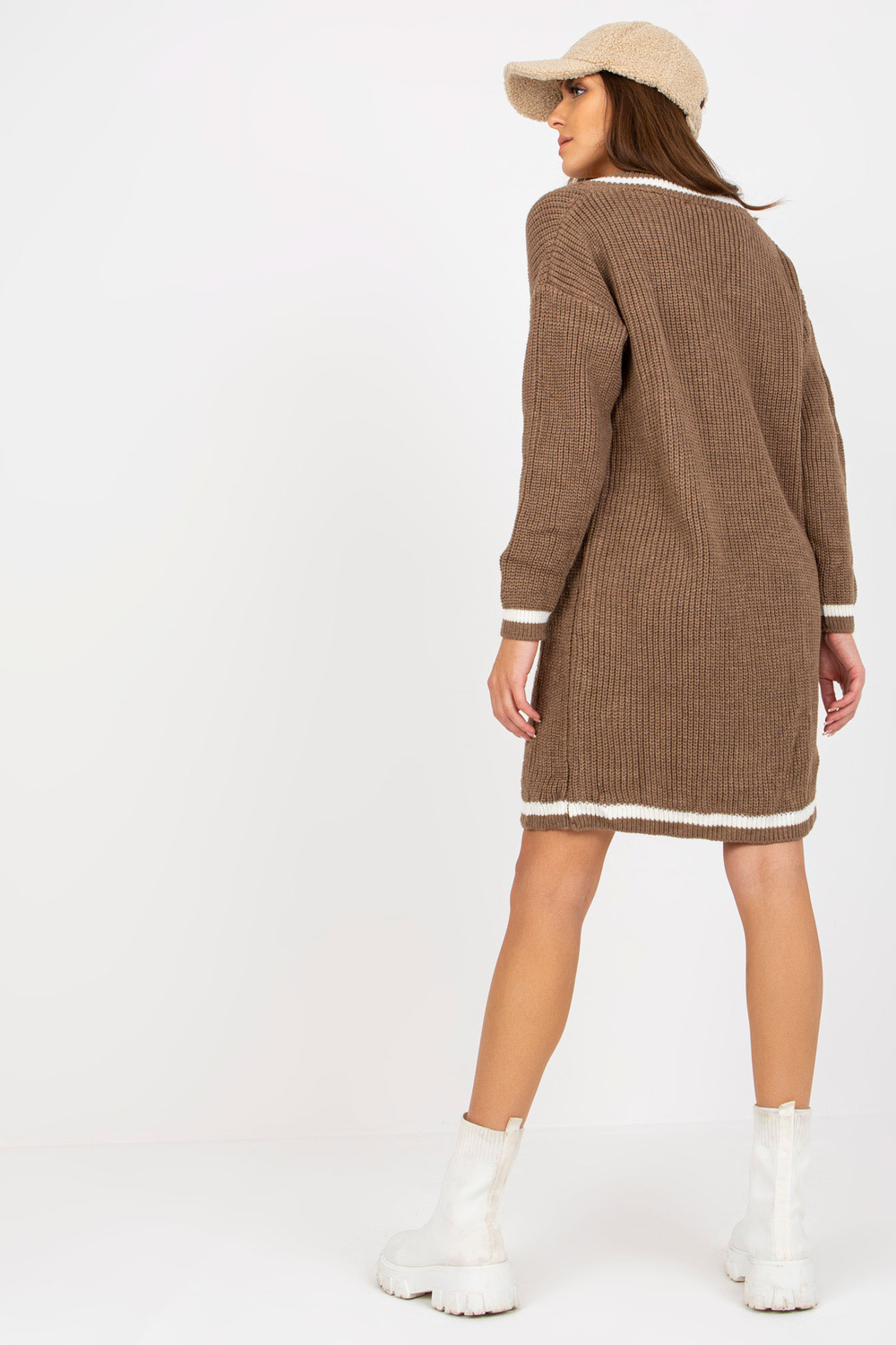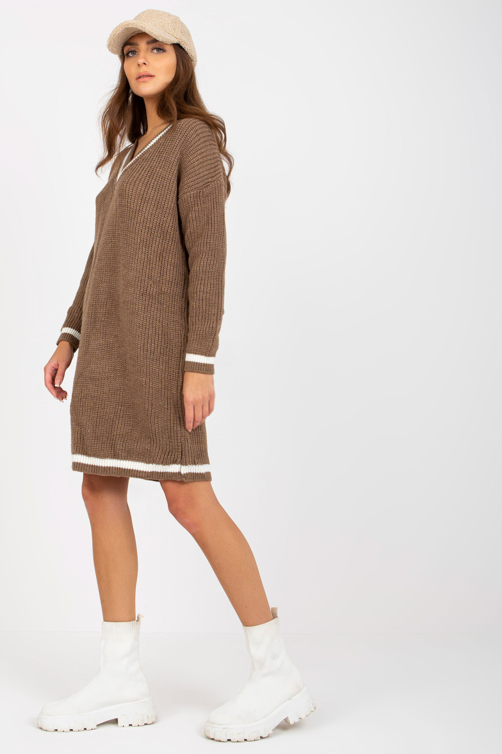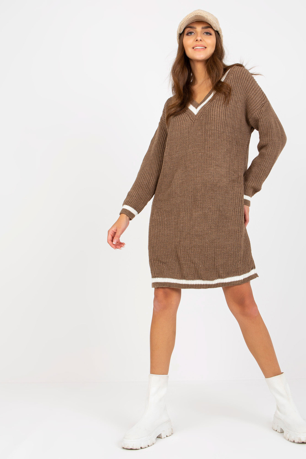 Pruun lahtine kootud kleit V RUE PARIS kaelusega .