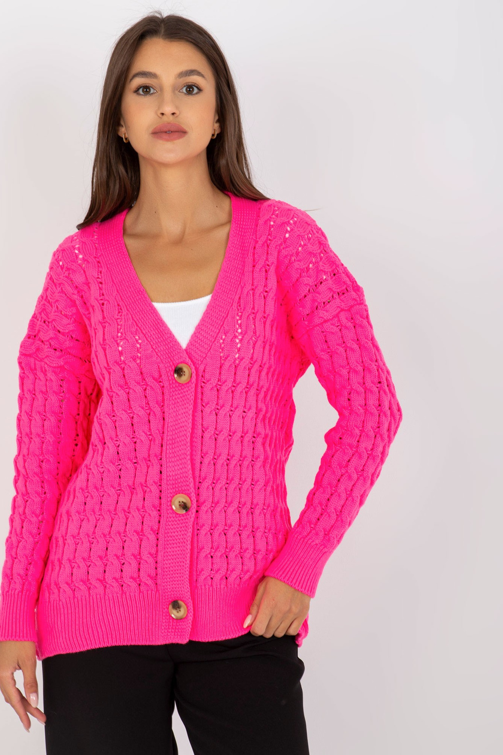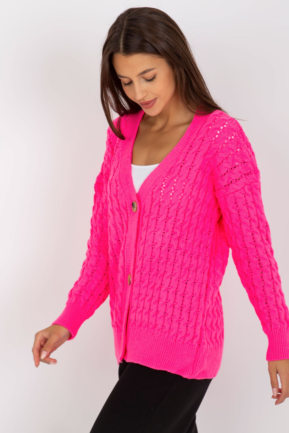 Ažuurne Fluopink palmikutega kardigan RUE PARIS .