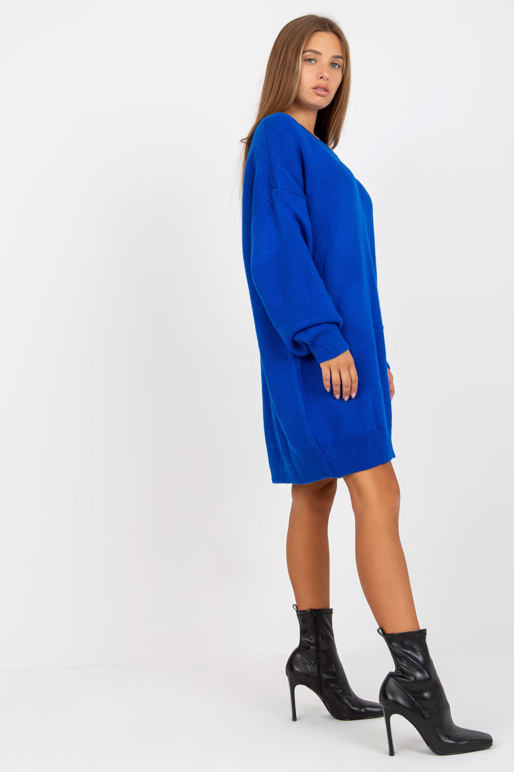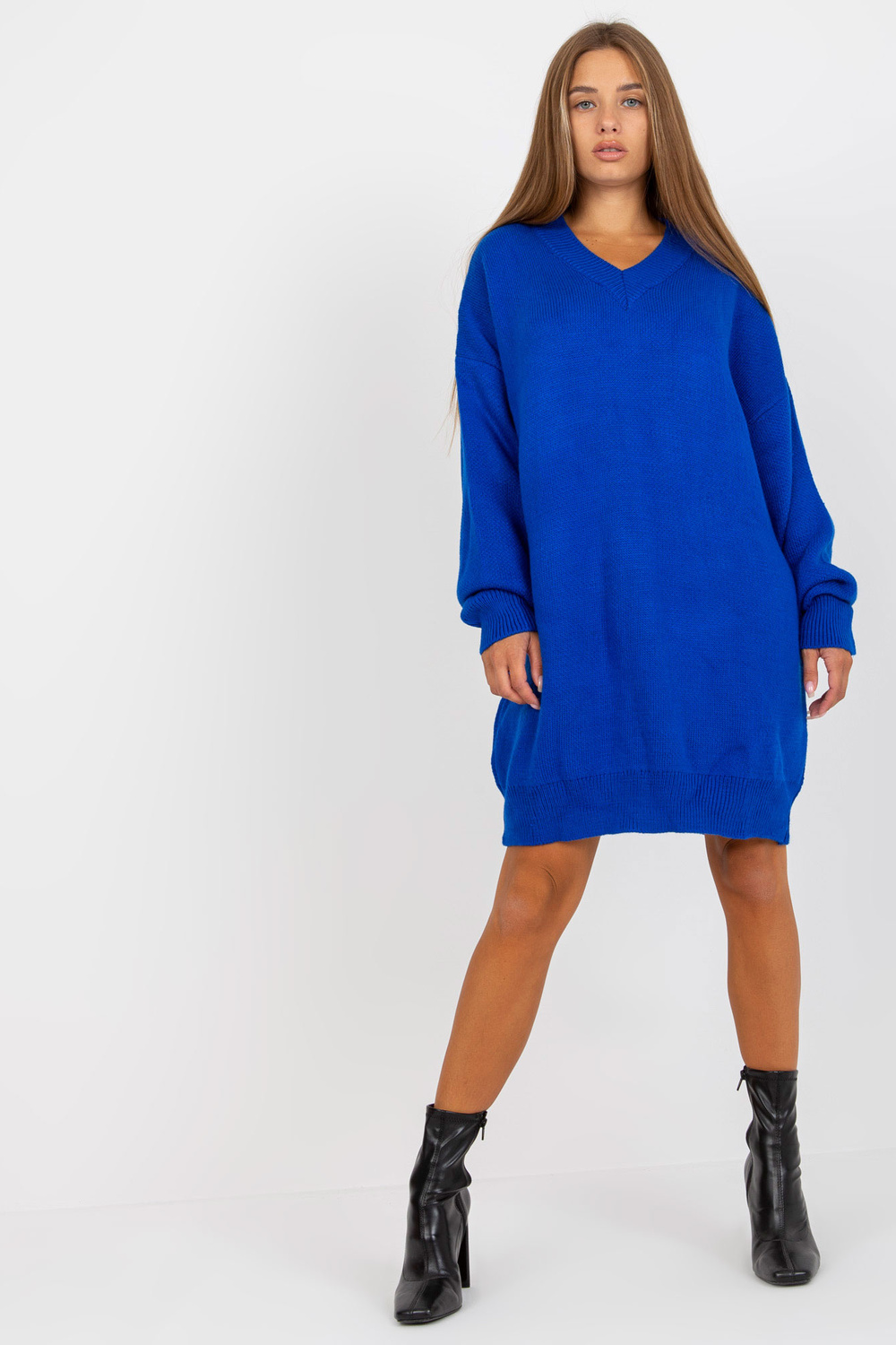 Tumesinine kootud kleit V RUE PARIS kaelusega .