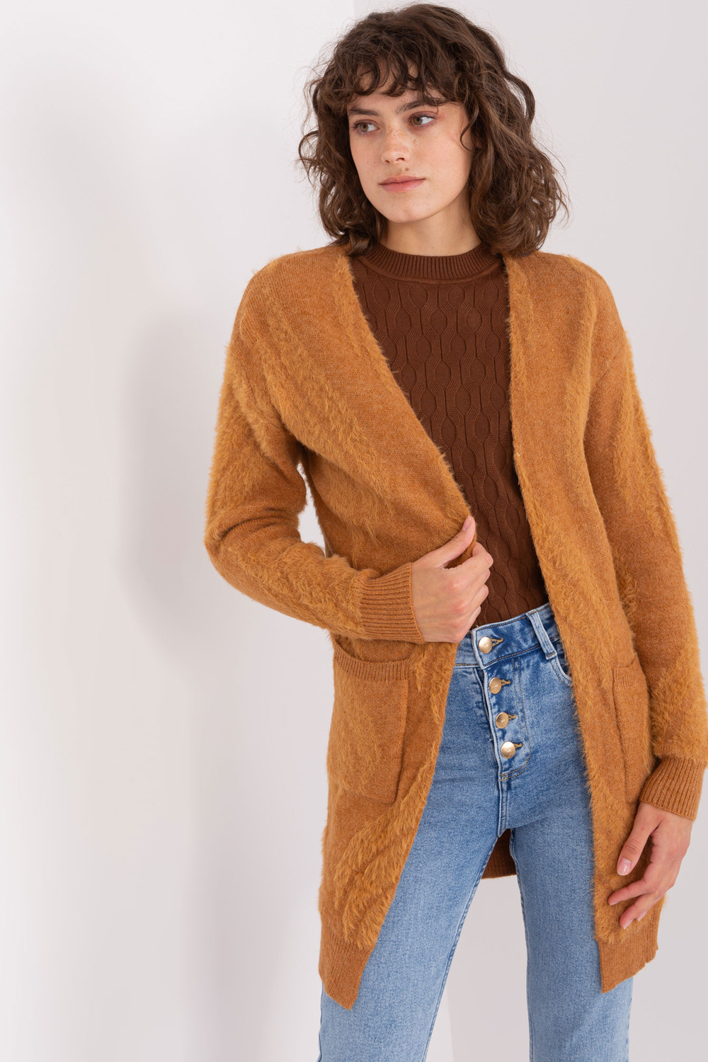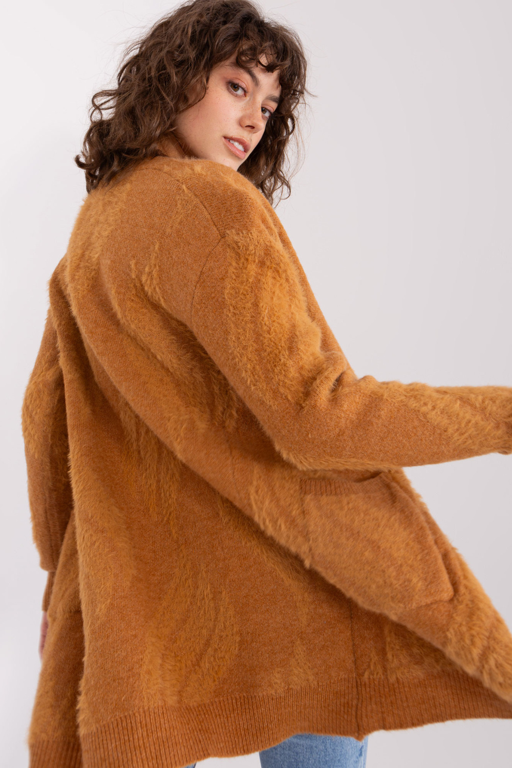 Kardigani mõõdud suuruses one, mõõdetuna tasaseks: laius kaenla alt - 65 cm, üldpikkus - 87 cm, varruka pikkus - 60 cm.