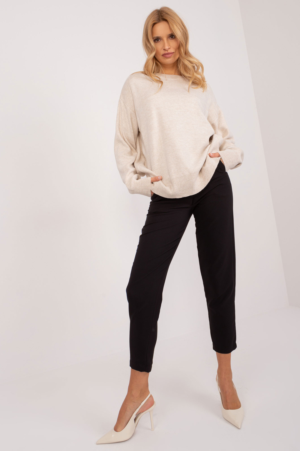 Modell kannab suurust one. Modelli mõõdud: kõrgus 175 cm, rind 90 cm, vöö 66 cm, puus 94 cm.