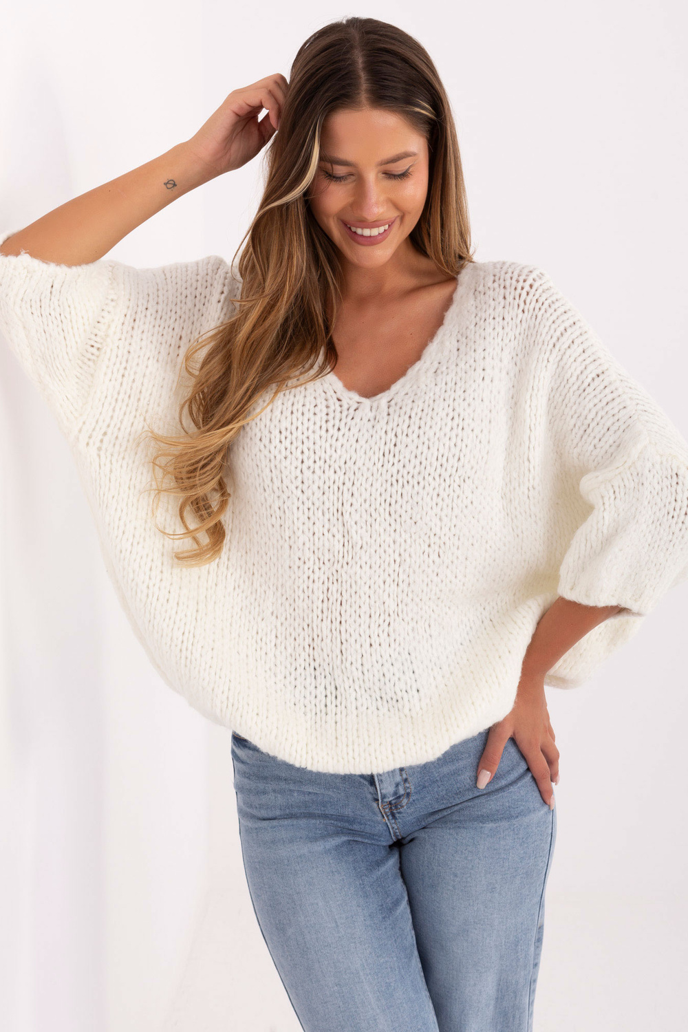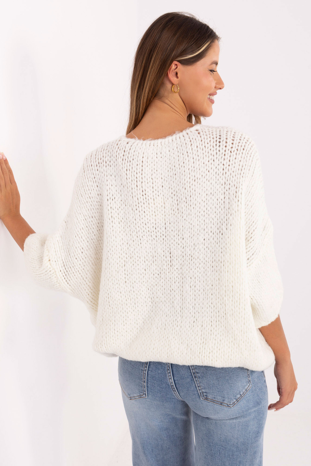 Ühe suuruse kampsuni mõõtmed: laius kaenlaalustest - 77 cm, kogupikkus - 65 cm, varruka pikkus - 23 cm (õmblusest), laius puusadel - 62 cm.