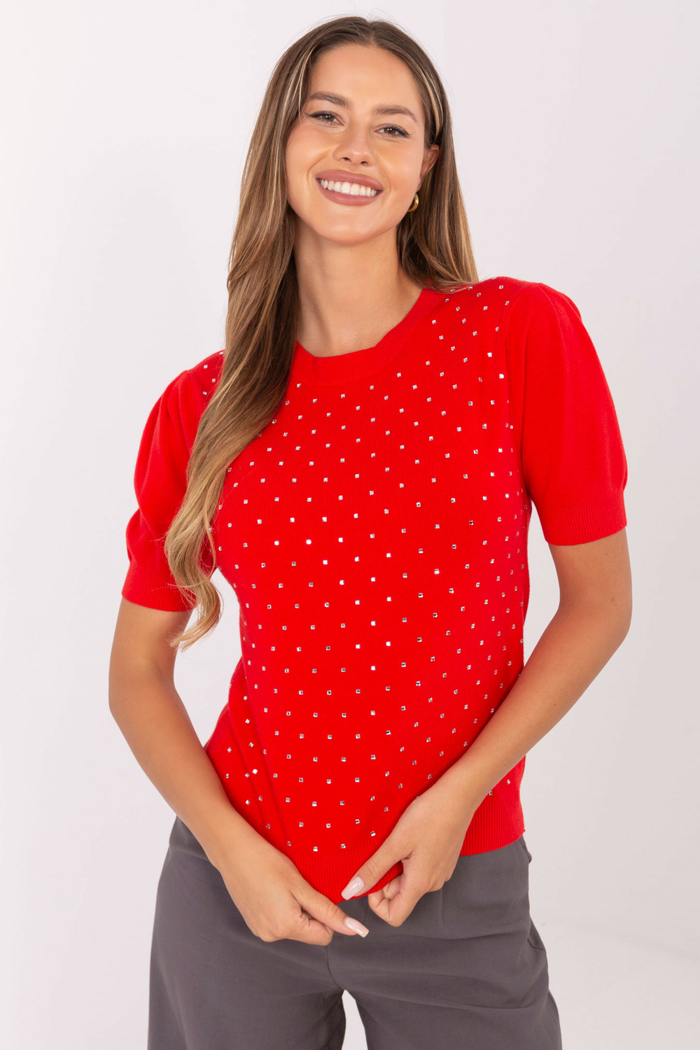 Kudumi mõõdud S/M suuruses, mõõdetuna lamades: laius kaenla alt - 45 cm, varruka pikkus - 27 cm, kogupikkus - 57 cm, laius puusade kohalt - 38 cm (veniv materjal).