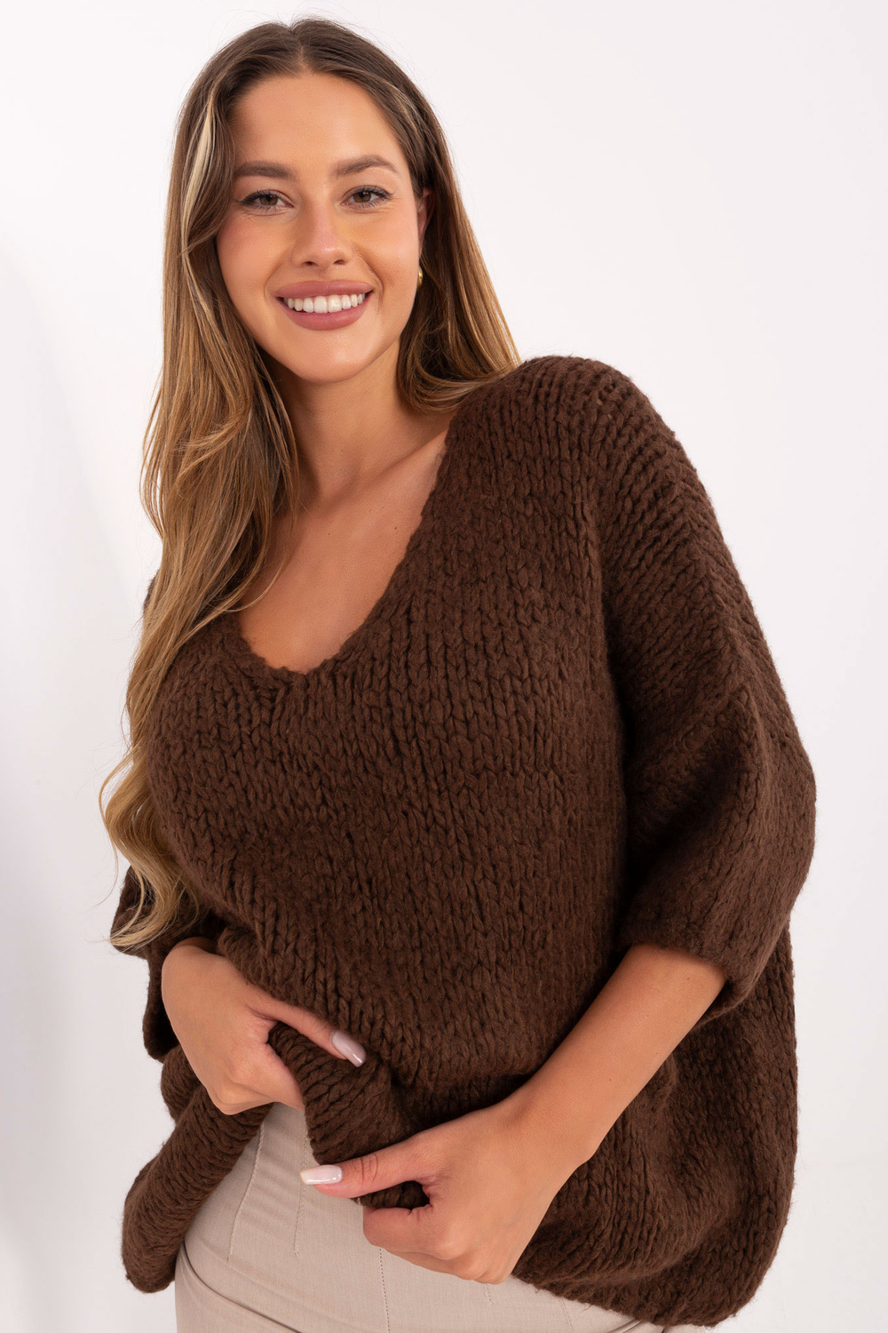 Ühe suuruse kampsuni mõõdud: laius kaenlaalustest - 77 cm, kogupikkus - 65 cm, varruka pikkus - 23 cm (õmblusest), laius puusadel - 62 cm.