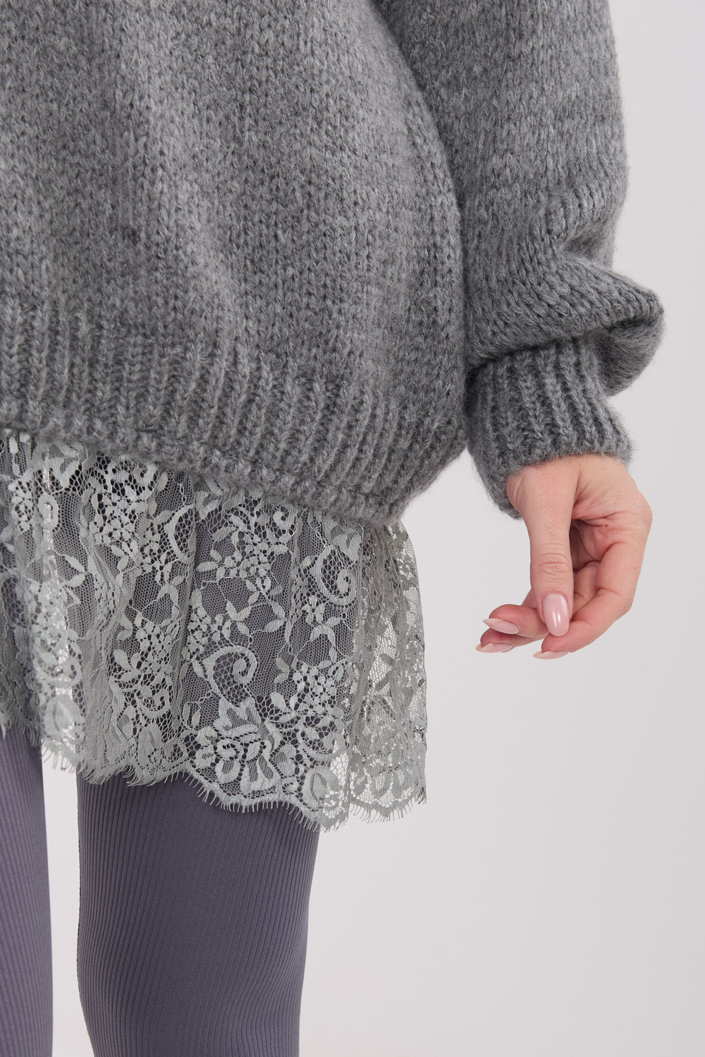 Model kannab ühe suurusega riietust. Modeli mõõdud: pikkus 169 cm, rind 88 cm, talje 68 cm, puusad 89 cm.