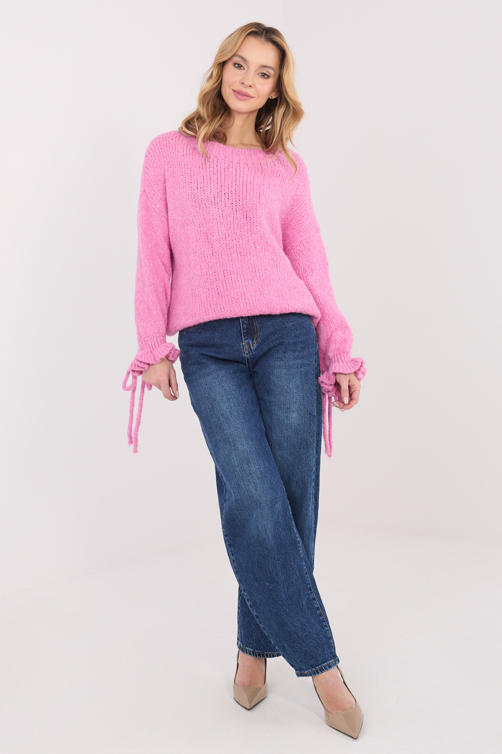 Model kannab ühe suurusega rõivast. Modeli mõõtmed: pikkus 169 cm, rind 88 cm, talje 68 cm, puusad 89 cm.