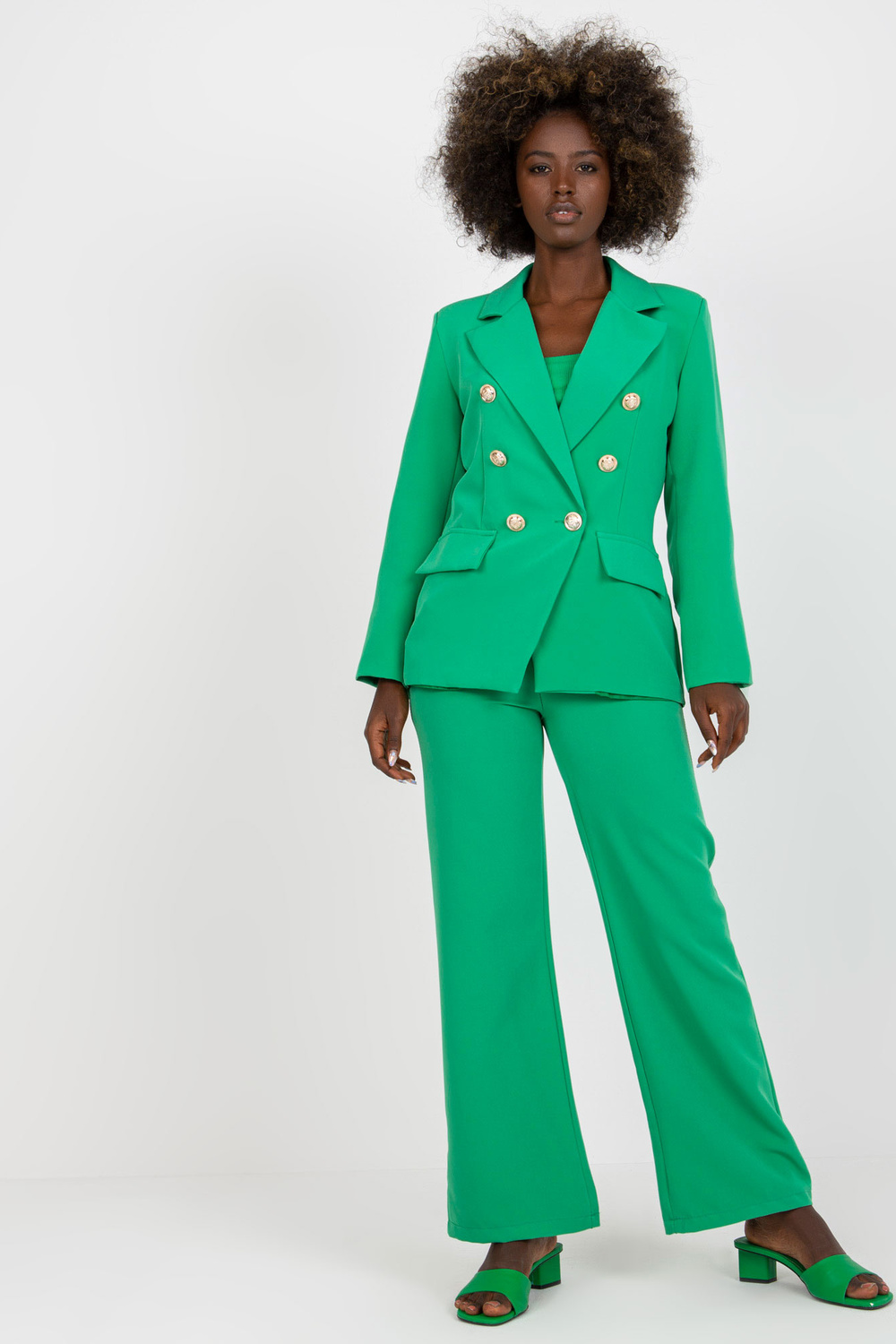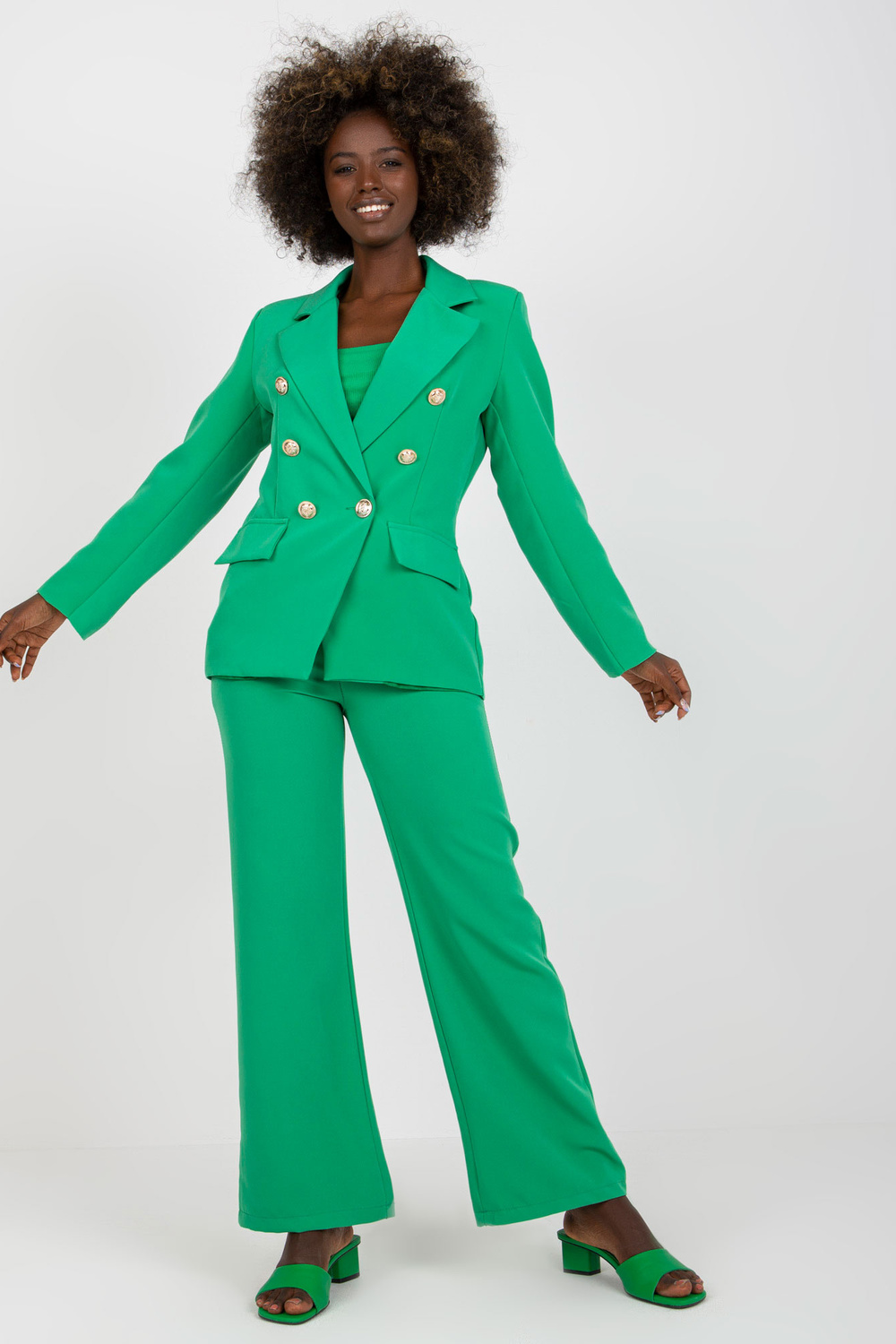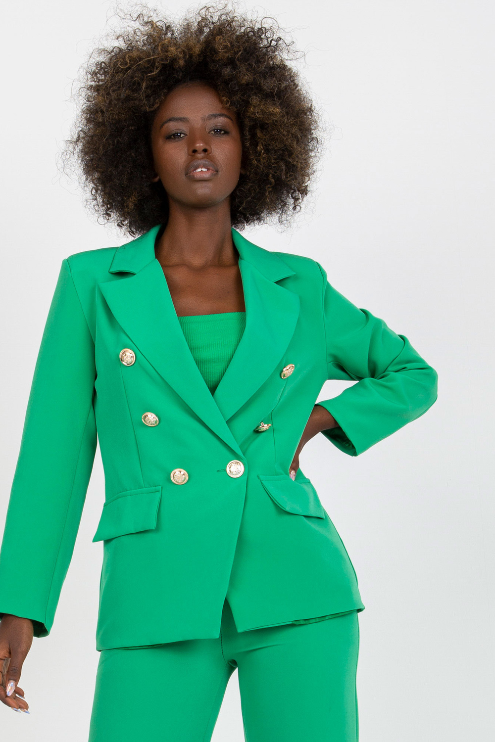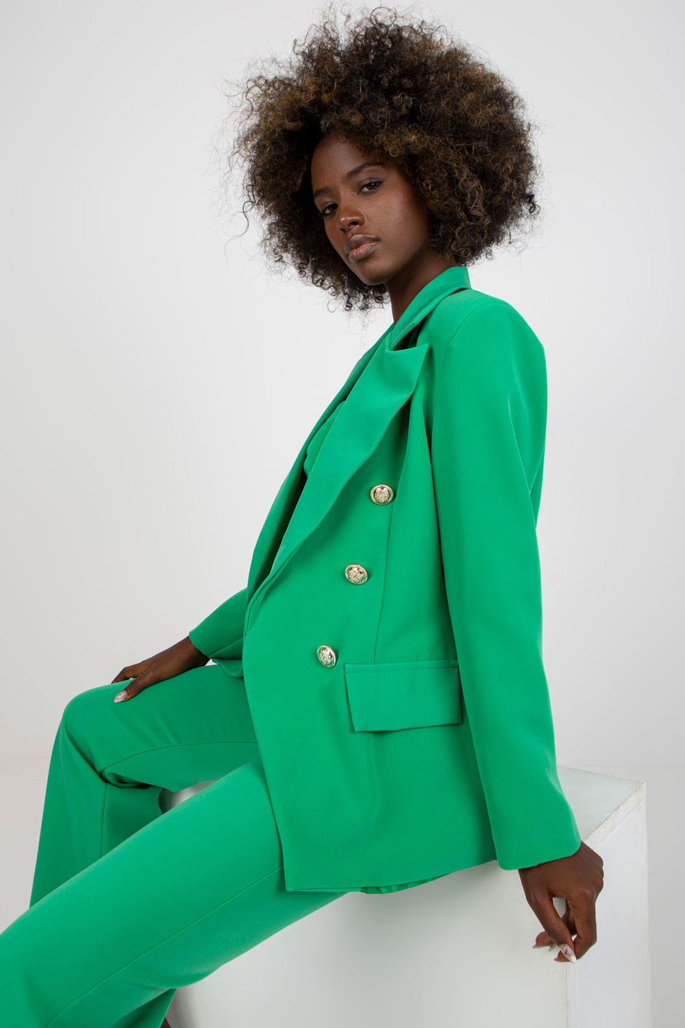 Roheline klassikaline kaherealise lukuga bleiser . tarvikud: vooder, imitatsioonitaskud, nööpkinnitus, õmmeldud õlapadjad materjalkoostis: 95% polüester, 5% elastaan pesumeetod: masinpesu 30°C Tootekood: DHJ-MA-15555.00P dominantpat
