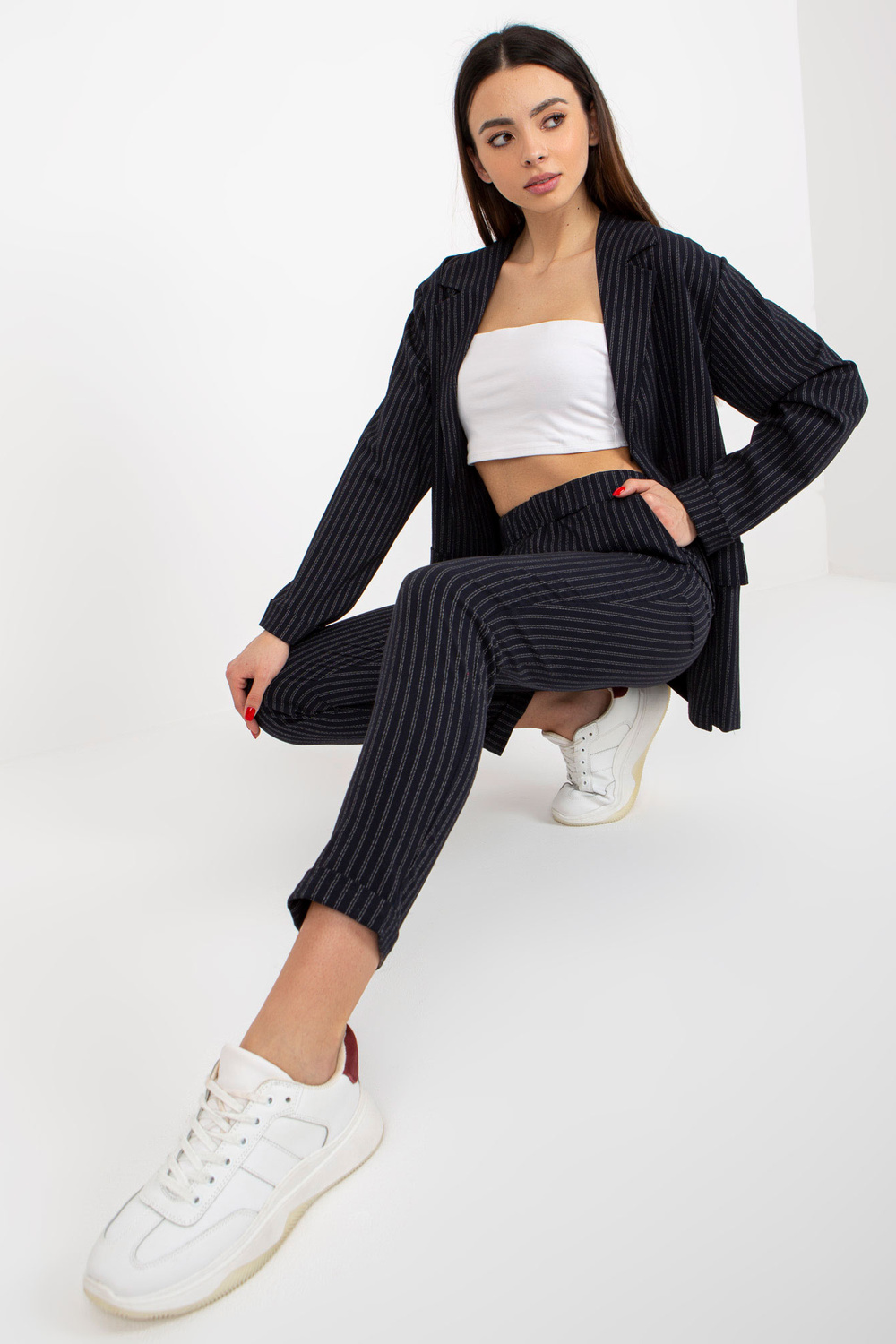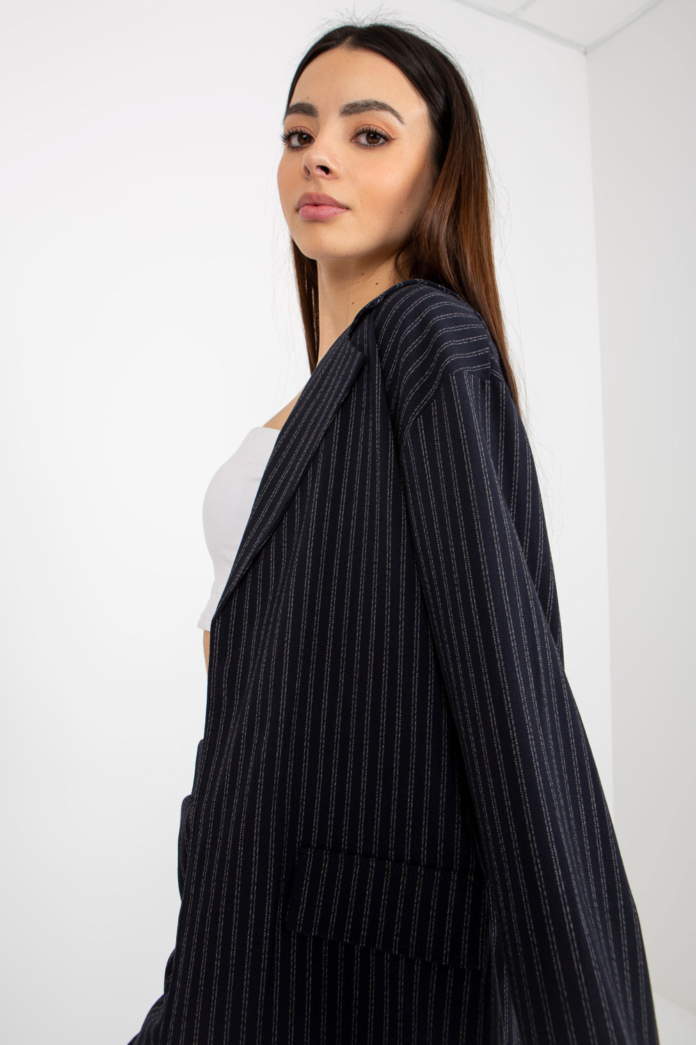 Meresinine elegantne triibulise ülikonna bleiser.