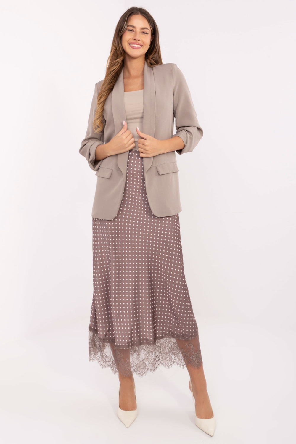 Model kannab one size suuruses riiet. Modelli mõõdud: pikkus 176 cm, rind 90 cm, vööümbermõõt 62 cm, puusad 94 cm.
