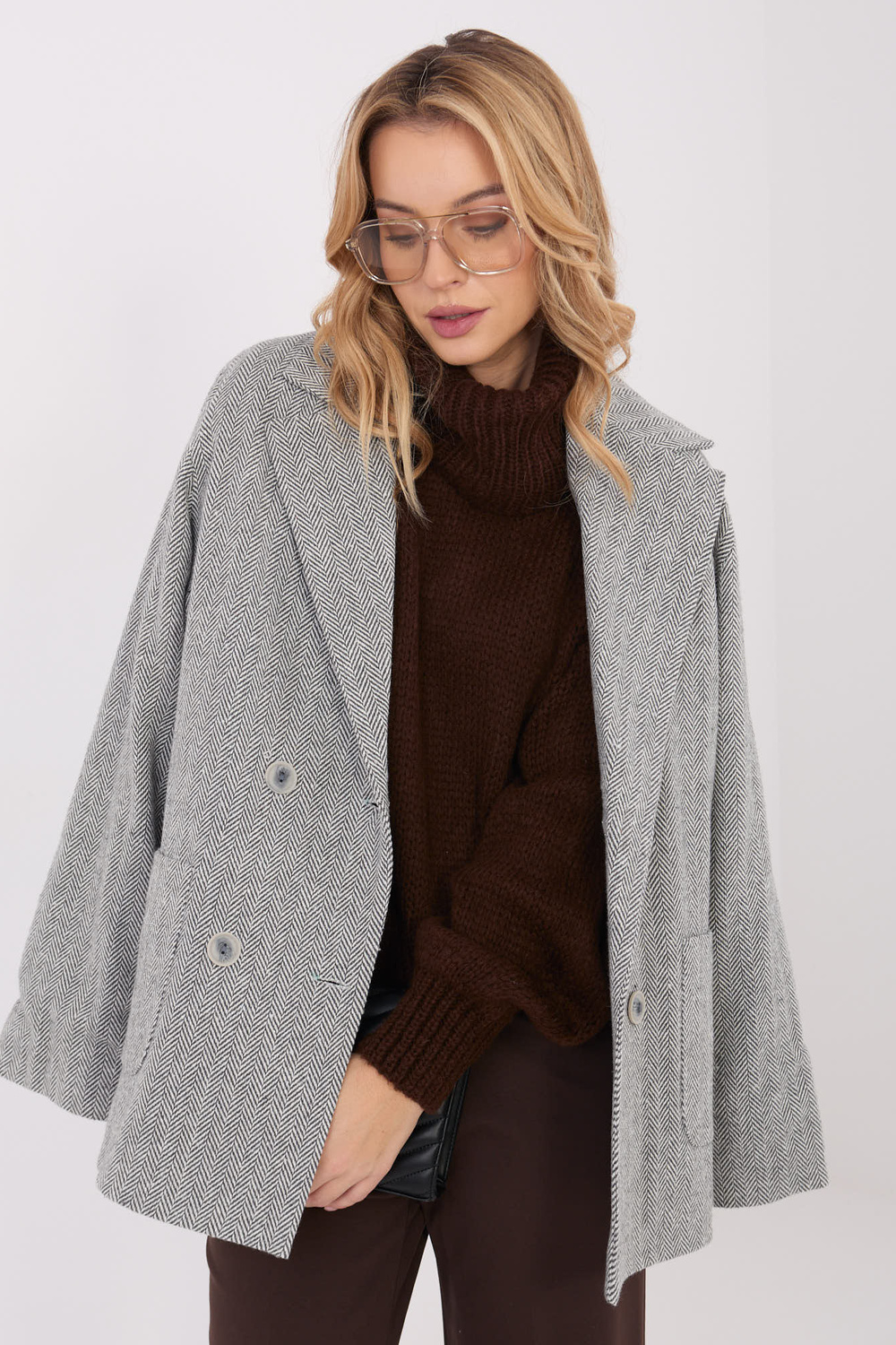 Modell kannab ühesuurust riiet. Modelli mõõtmed: pikkus 169 cm, rind 88 cm, talje 68 cm, puusad 89 cm.