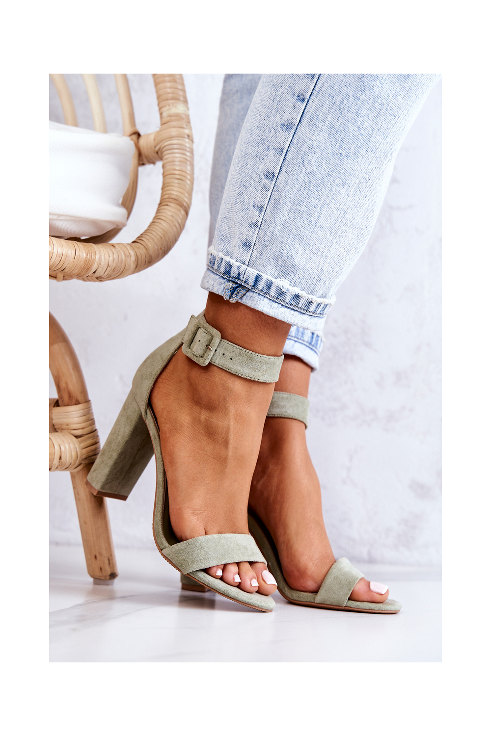 Seemisnakhsed sandaalid kõrge jämeda kontsaga rohelist värvi Jacqueline