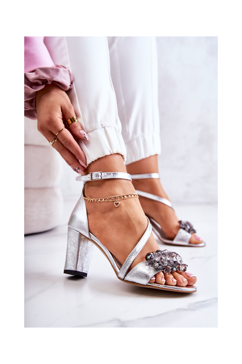 Naistesandaalid kõrge jämeda kontsaga Hõbedat värvi Torine