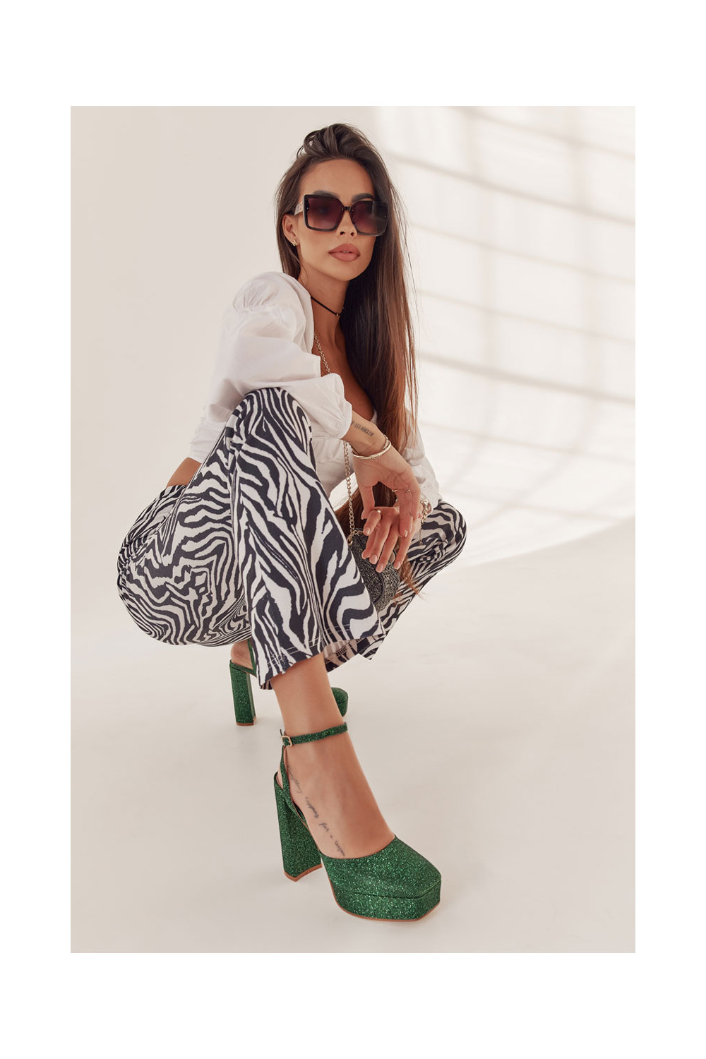 Naistesandaalid Läikivad kõrge jämeda kontsaga Rohelist värvi Rosel