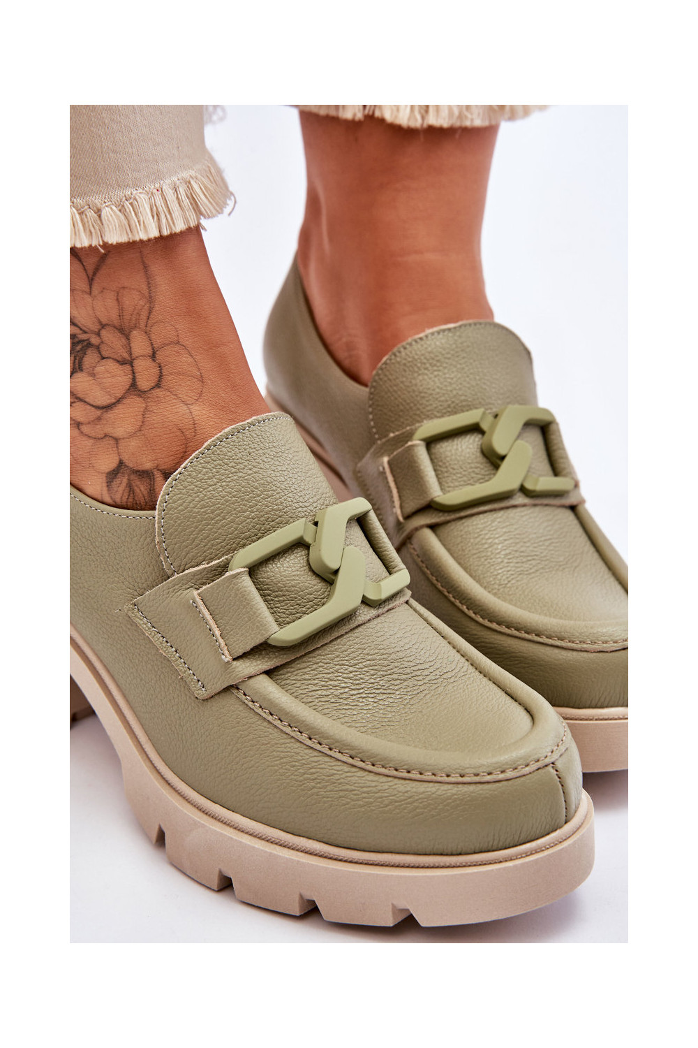 Elegantsed jalatsid kõrge jämeda kontsaga kaunistustega Rohelist värvi Harmell