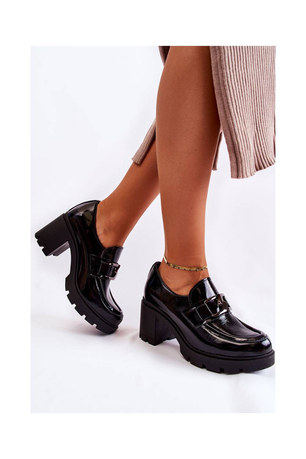 Elegantsed jalatsid kõrge jämeda kontsaga mustad Harmell