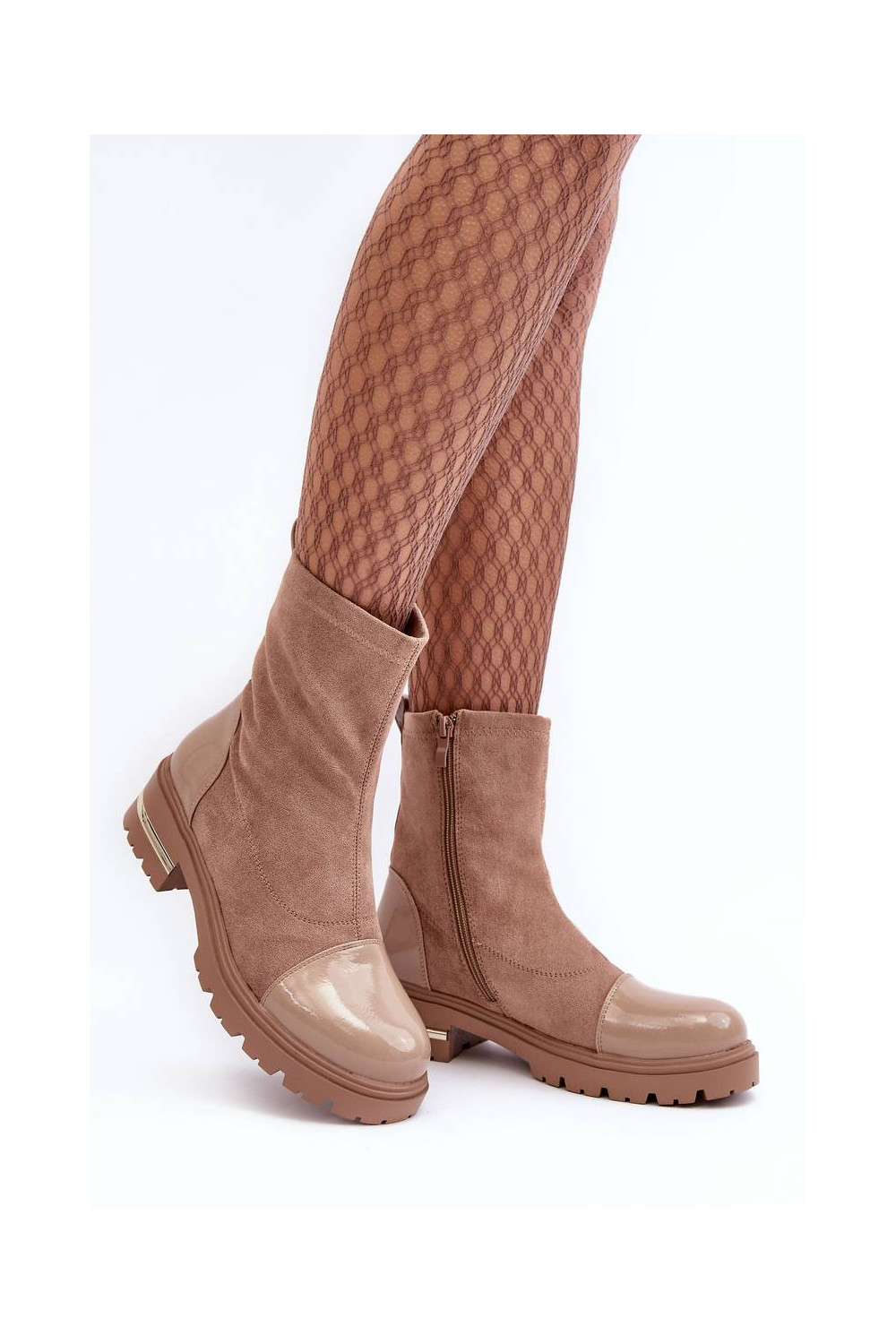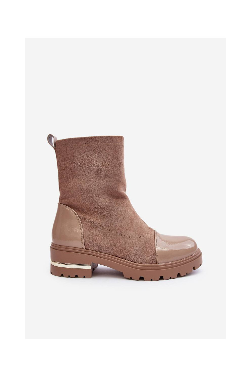 Klassikalise mudeli Naiste poolsaapad laiade nööridega beeži värvi Shendete