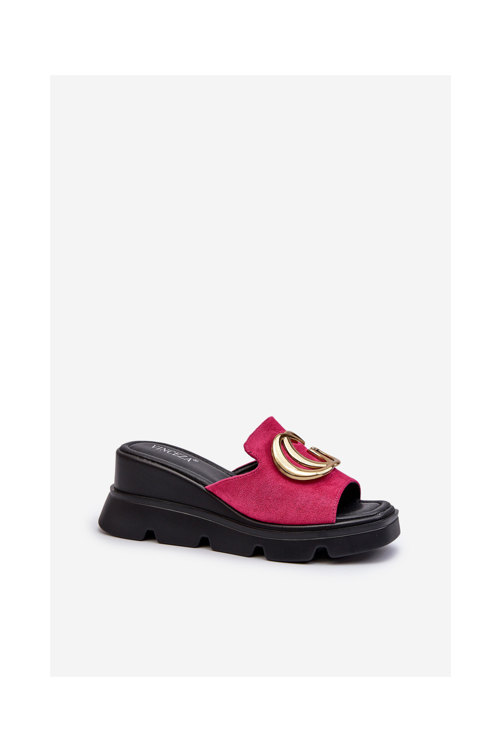 Naiste öko-seemisnahast plätud kiilu ja platvormi peal kuldse kaunistusega Fuksia Iaria