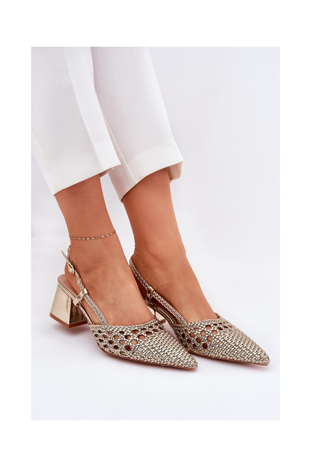 Kandaalised sandaalid laia rihmaga ja terava ninaga kuldse värviga Resterri