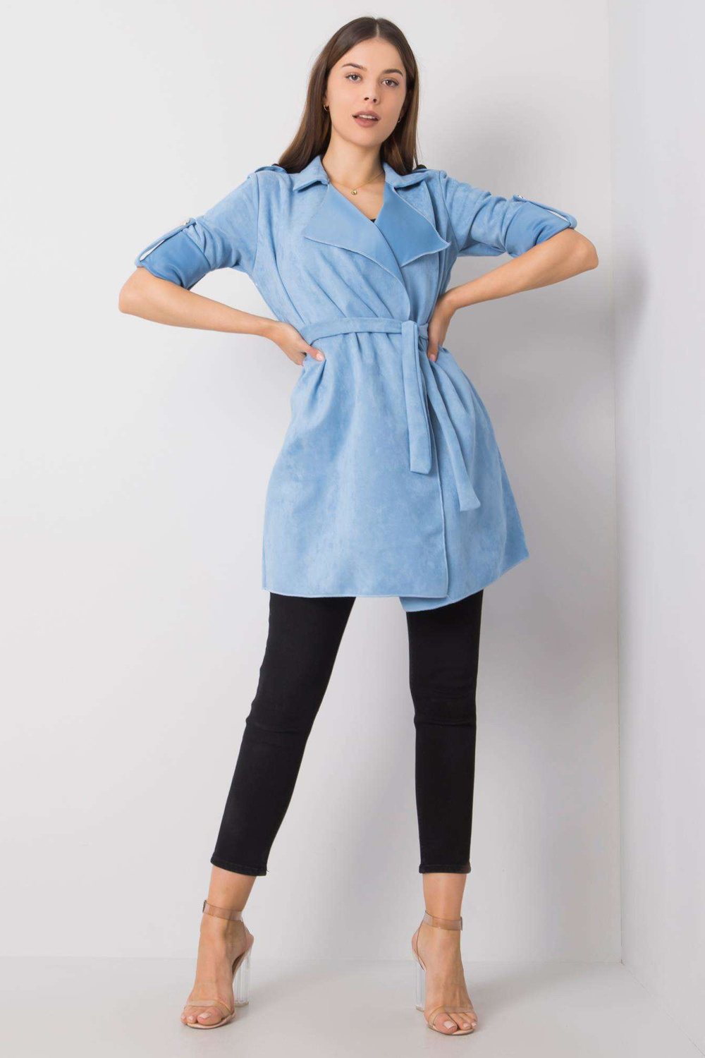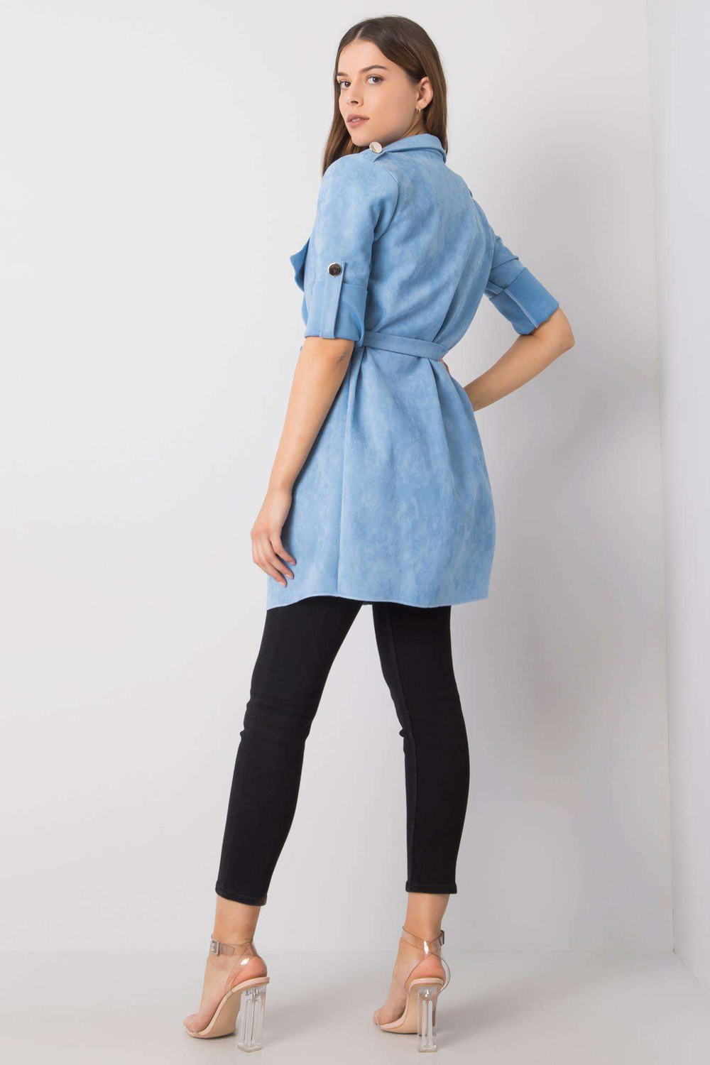 Model kannab suurust üks. Modelli mõõdud: kõrgus 177 cm, rind 90 cm, vöö 63 cm, puus 94 cm.