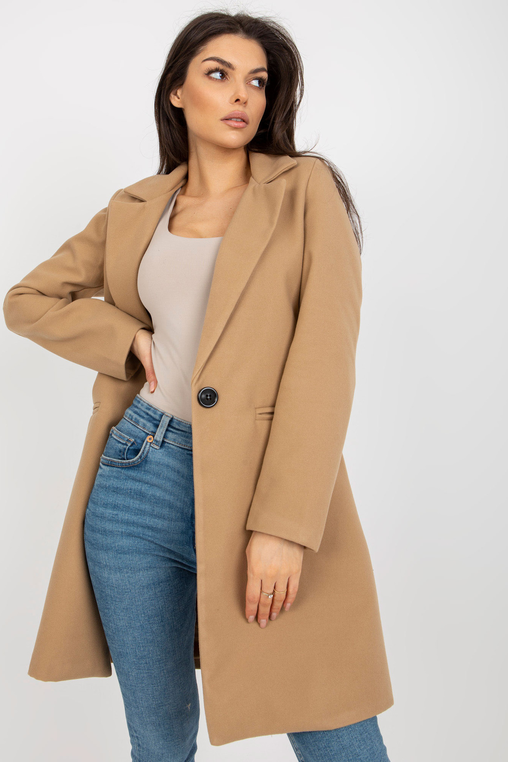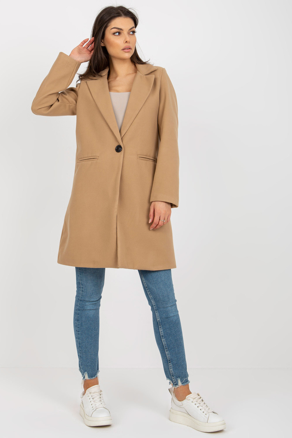 Ühe nööbiga suletav kaamelmantel OCH BELLA.