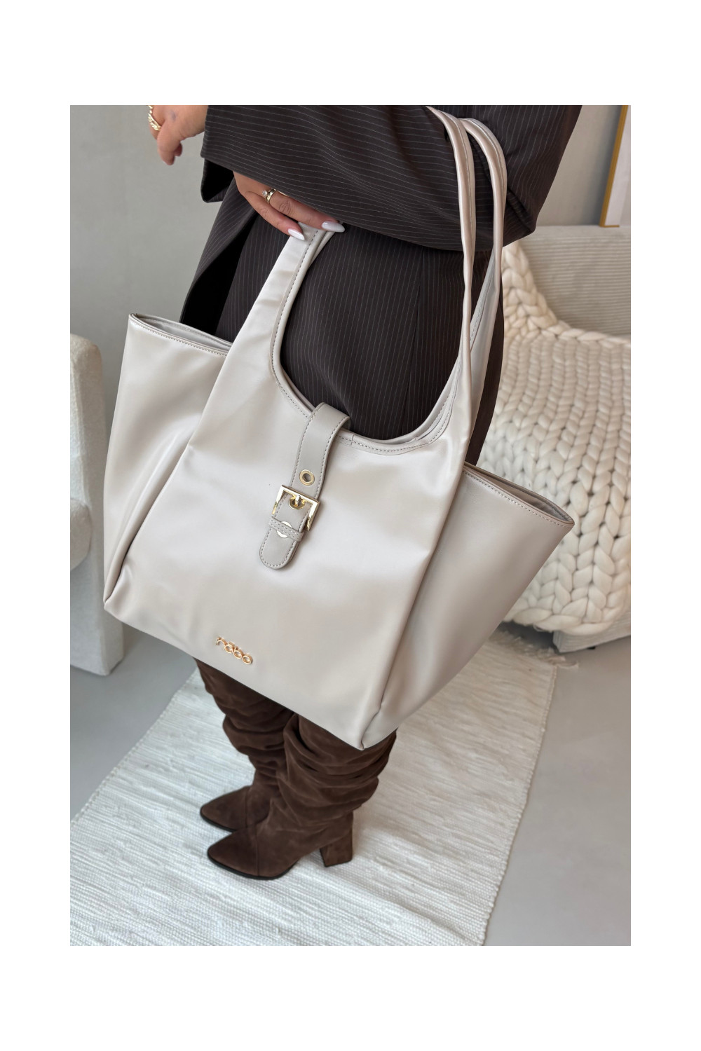 Shopper bag with clip NOBO BAG6010-015 Light beige