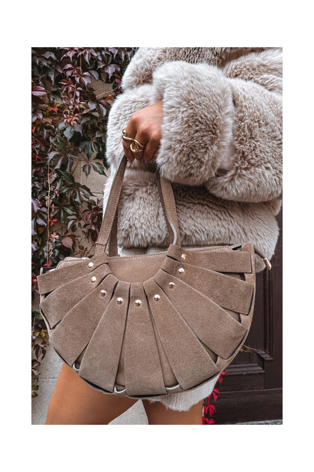 Looduslikust sametist elevandiluuvärvi käekott Tialine