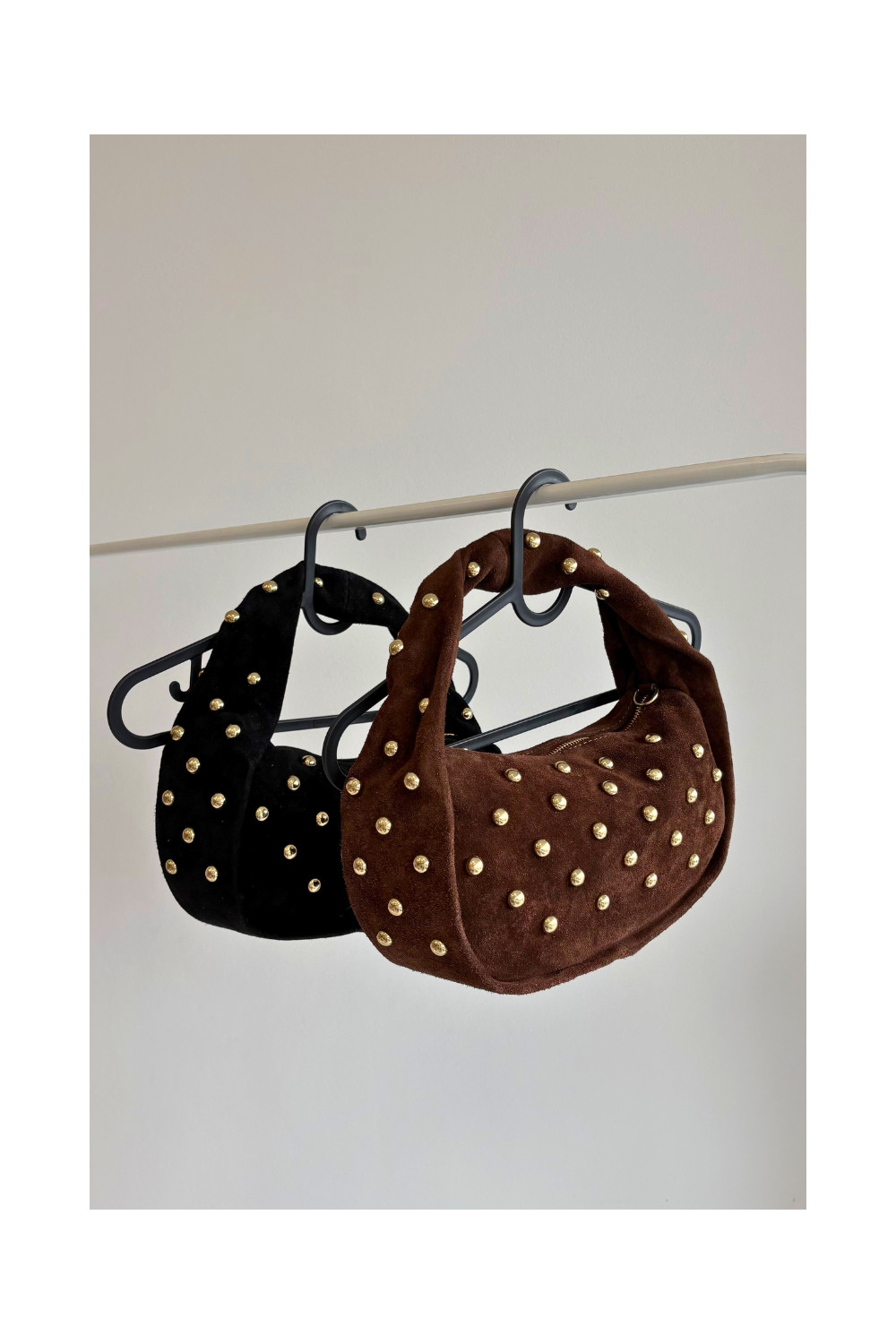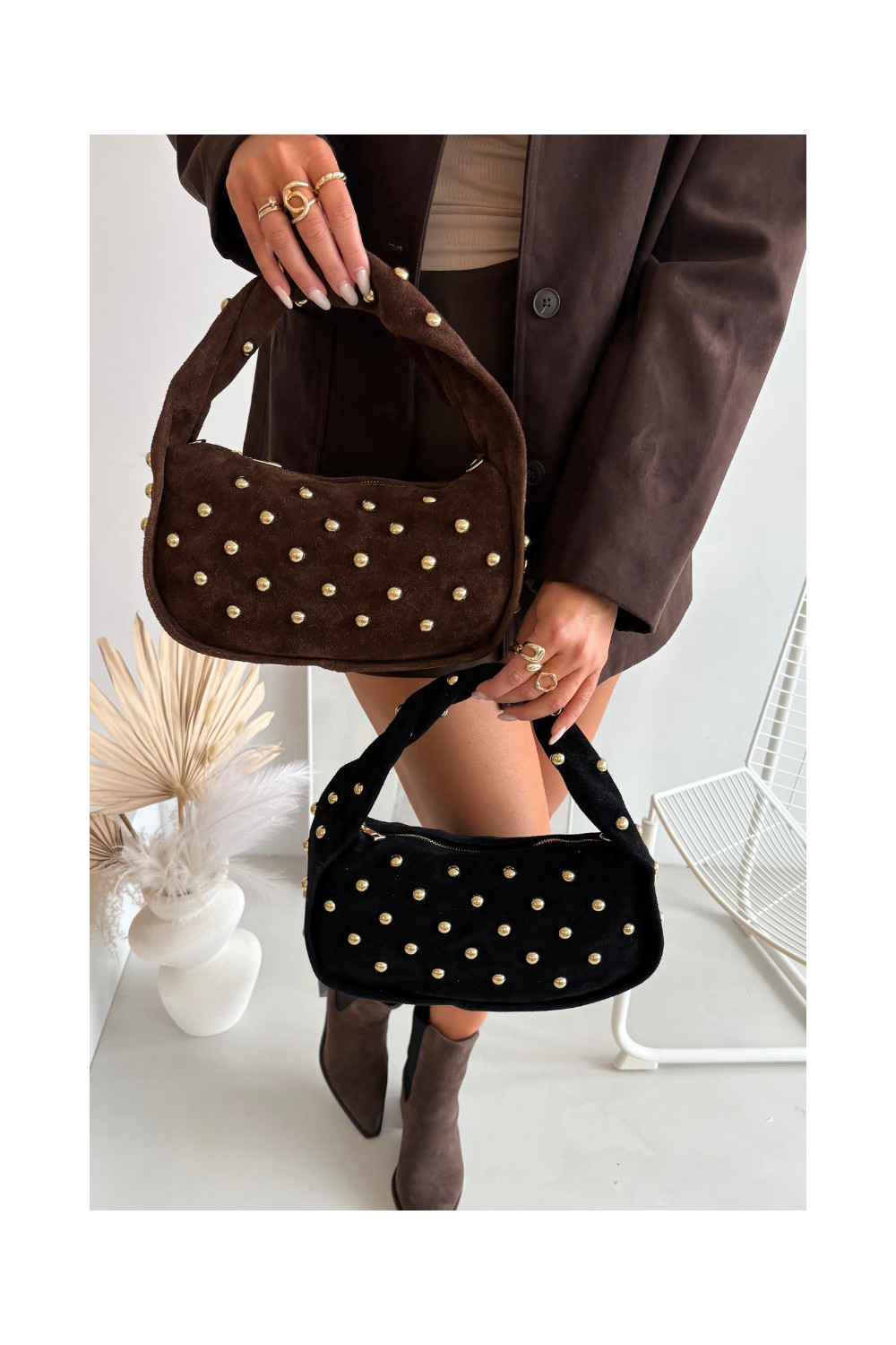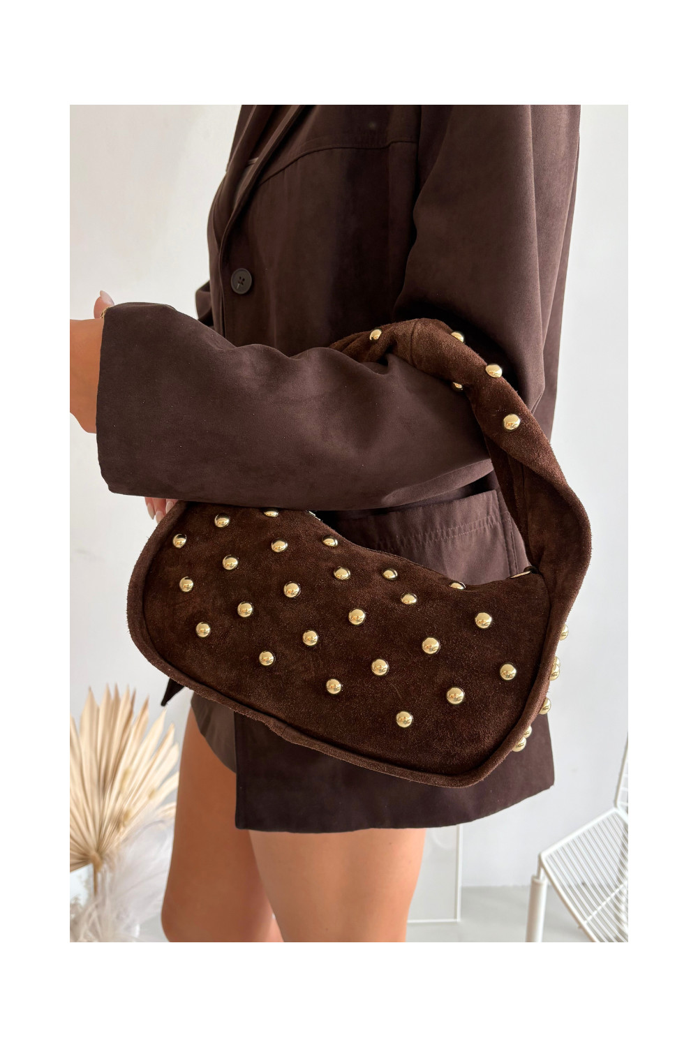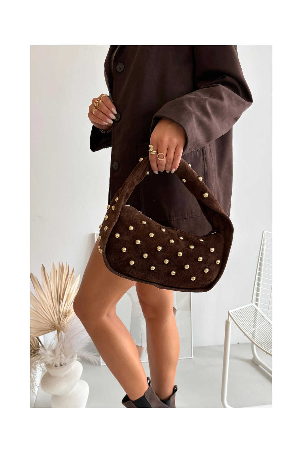 Bag Made of Natural Suede With Decoration Chocolate Julisse