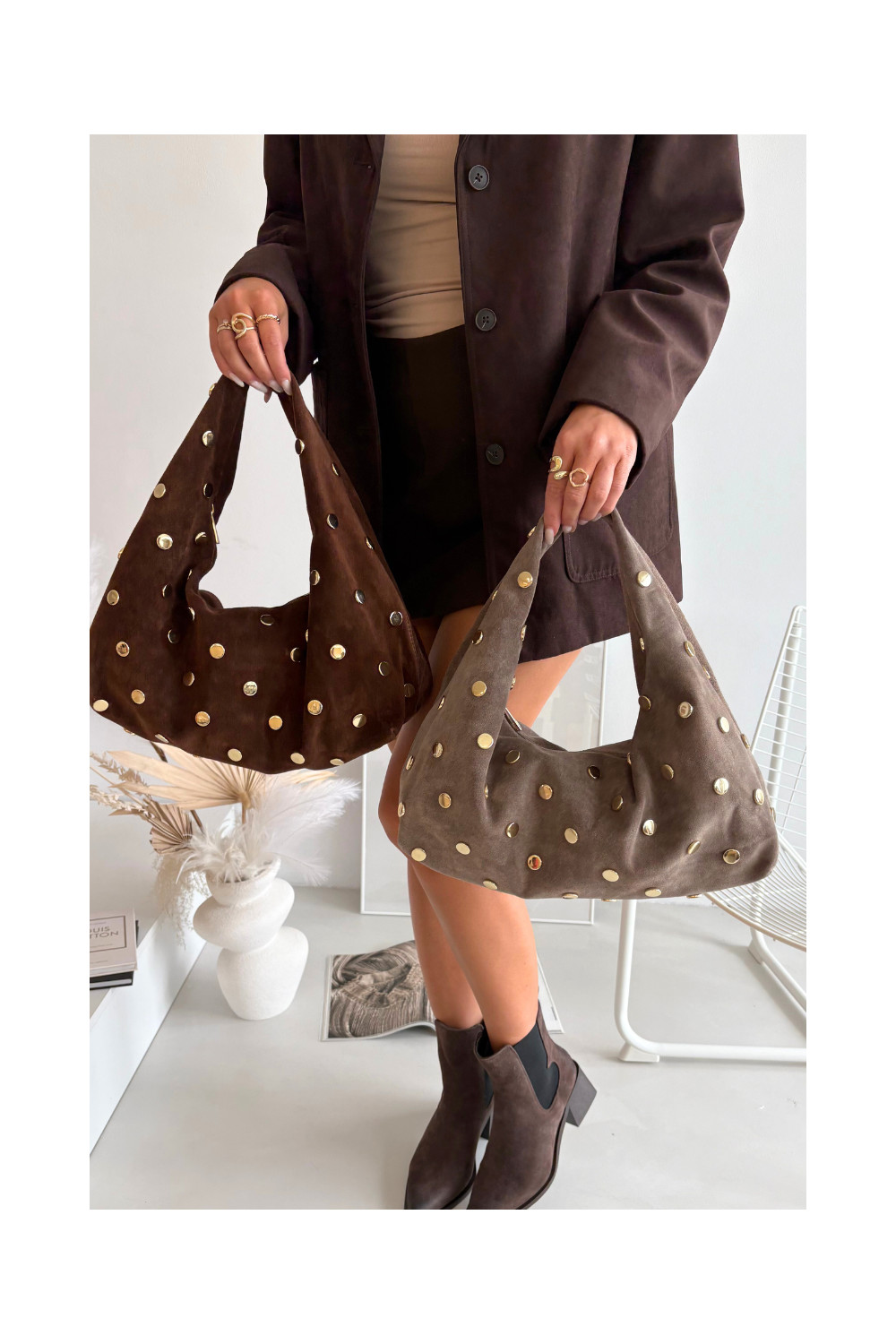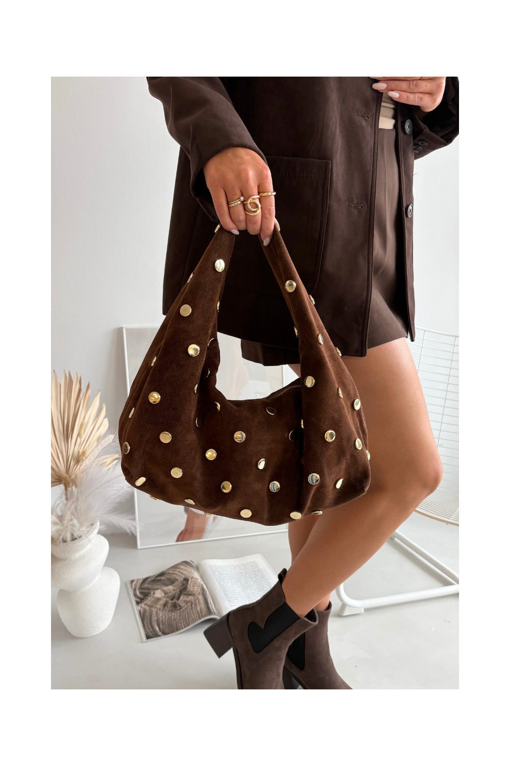 Sametist šokolaadivärvi käekott kaunistusega Marisse