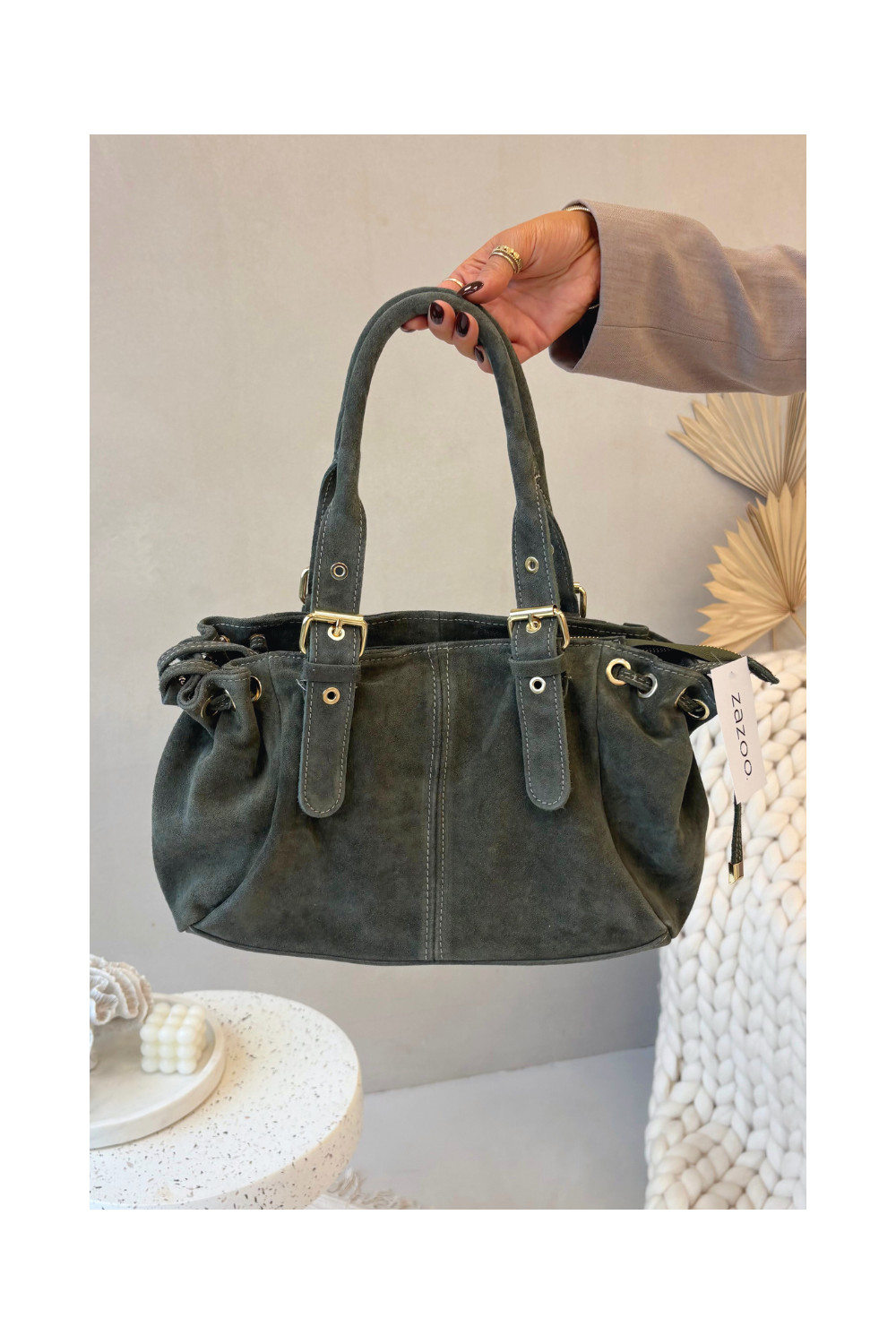 Käekott Z Naturalnego Zamszu Oliwkowa Danira