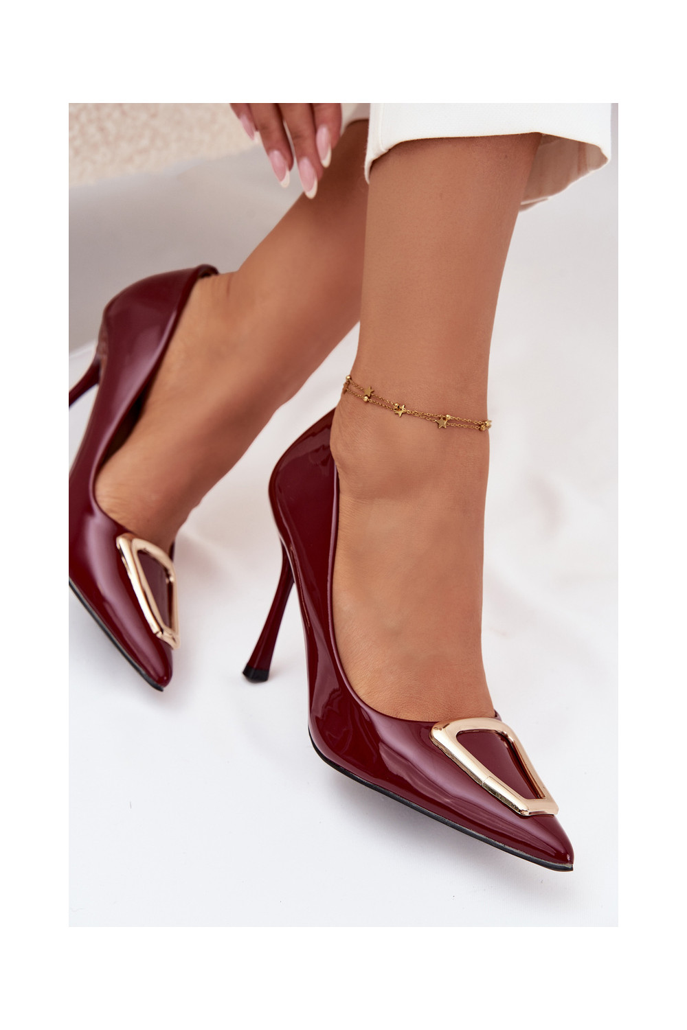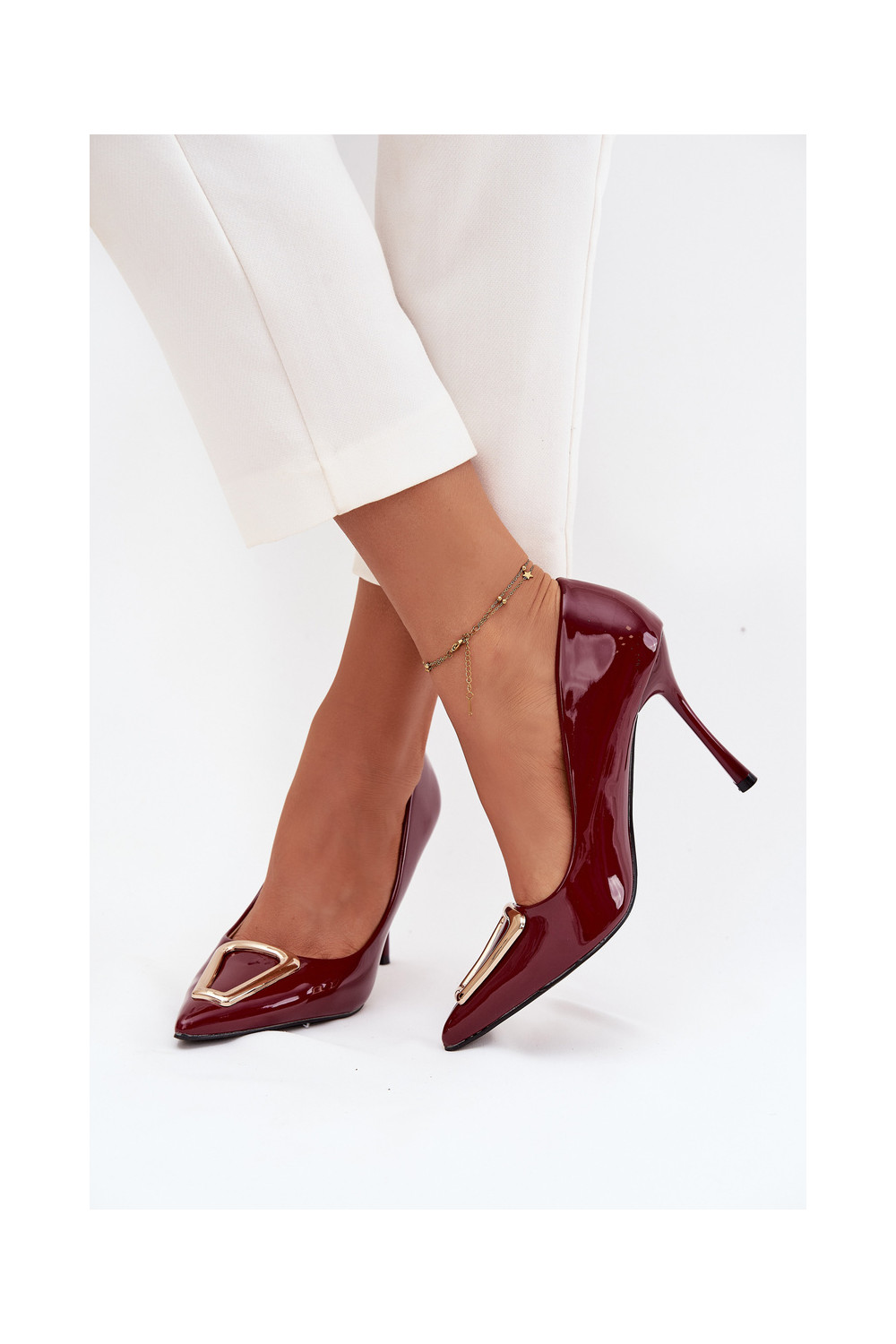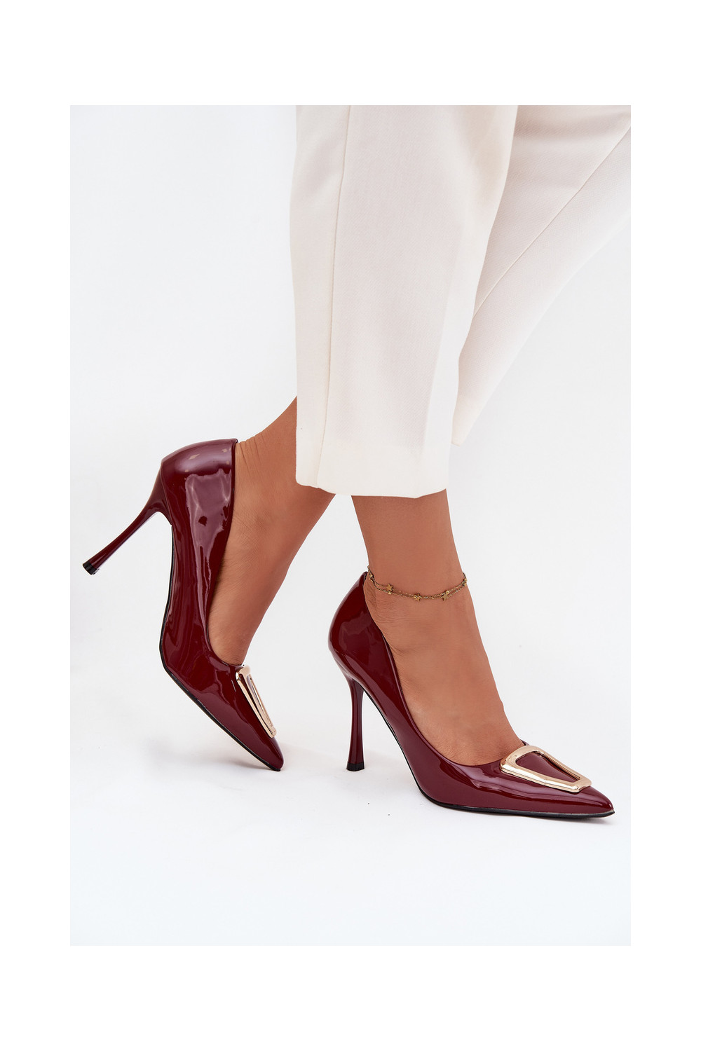 Paivelle lakitud kõrged kontsakingad kuldsete detailidega bordoo värvi