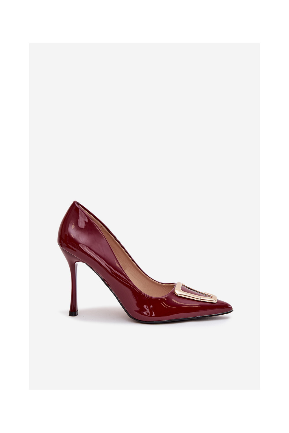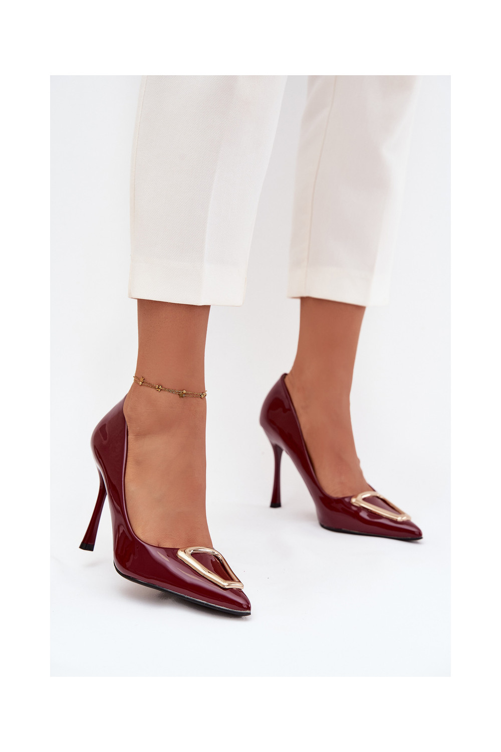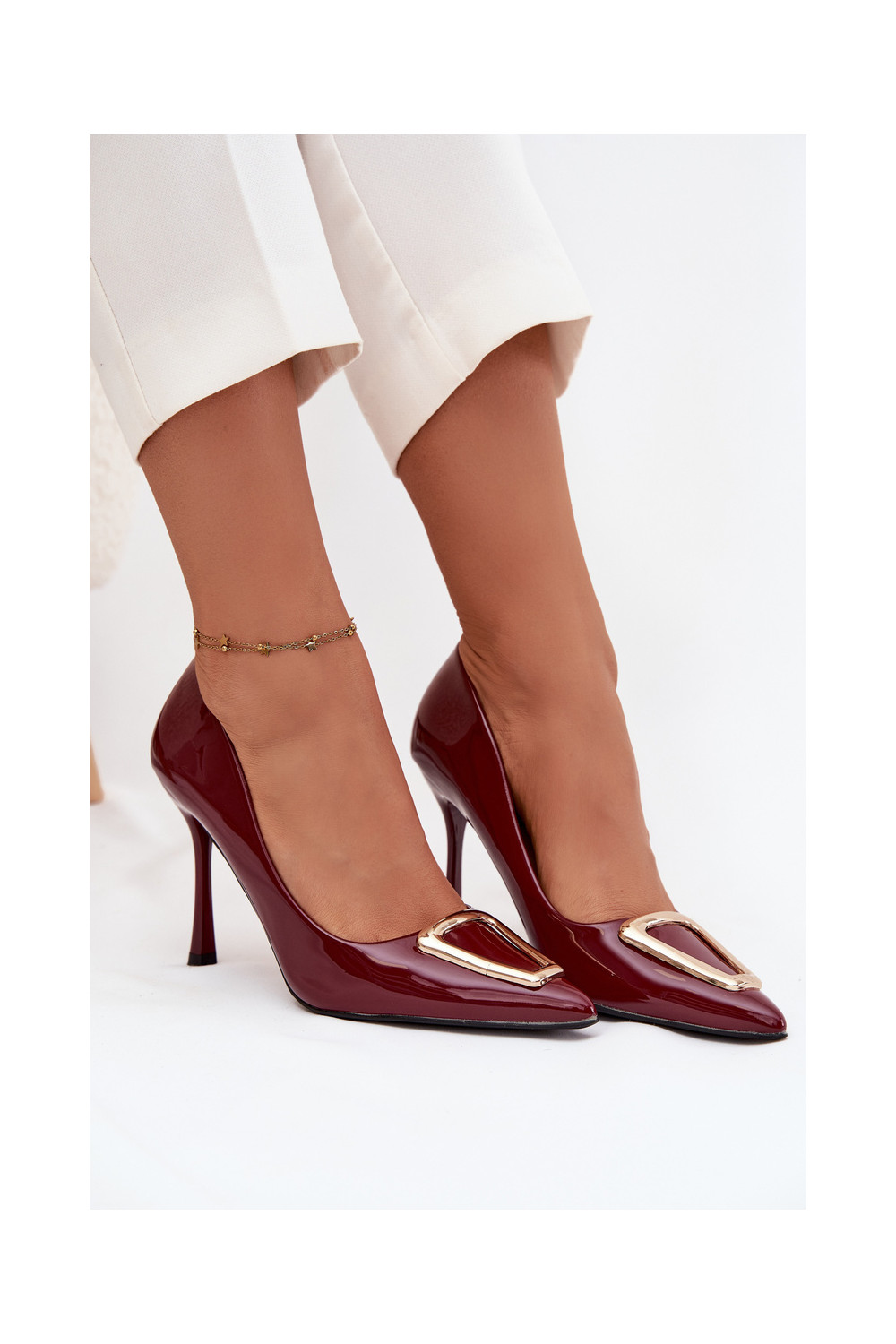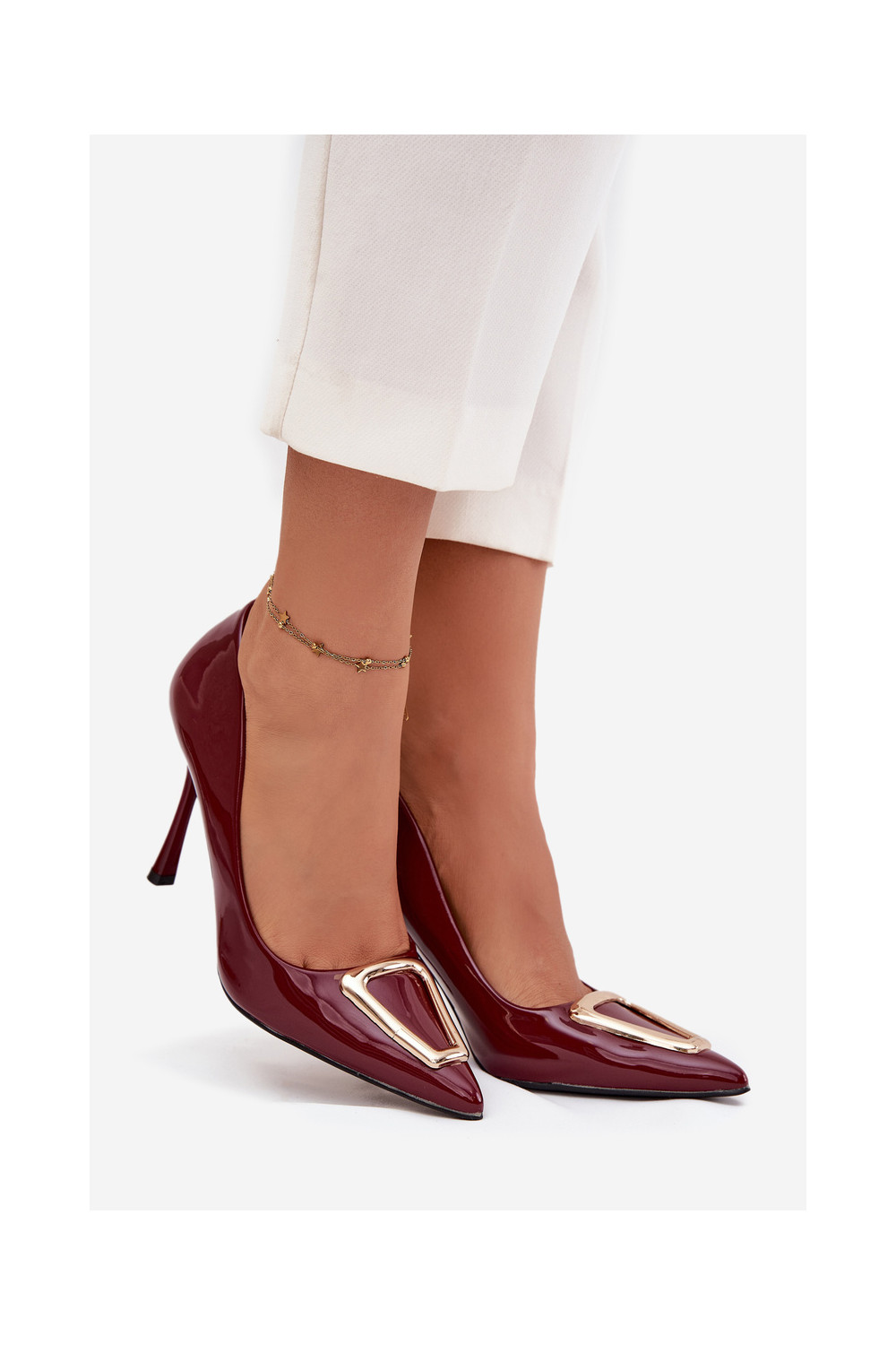 Paivelle lakitud kõrged kontsakingad kuldsete detailidega bordoo värvi
