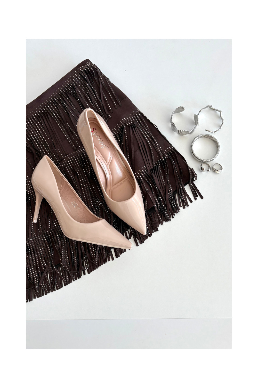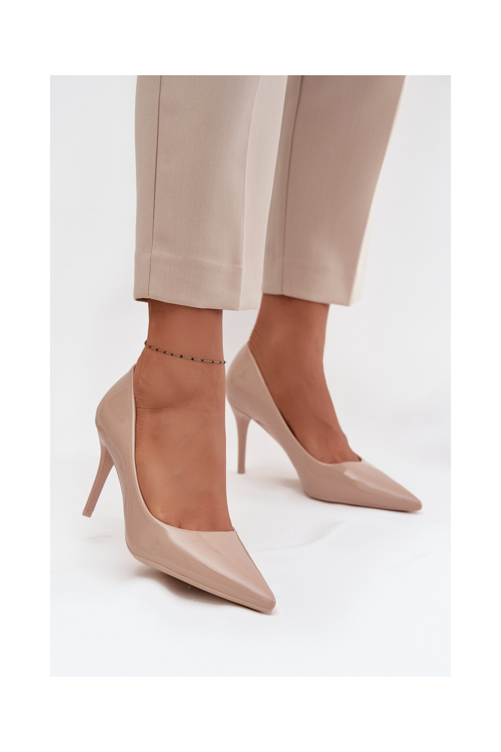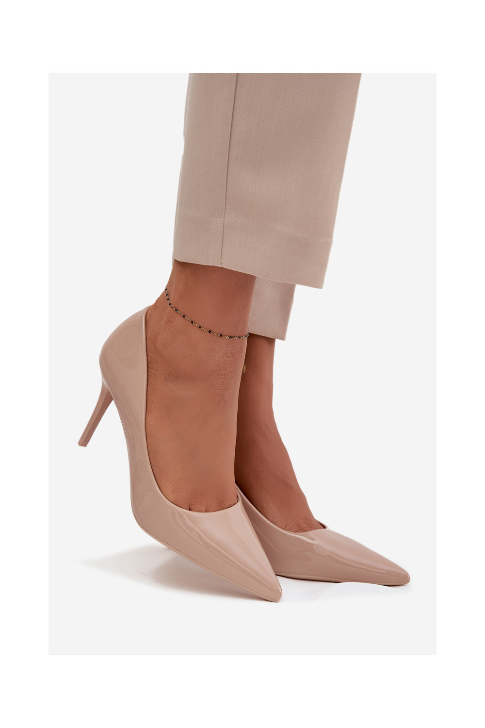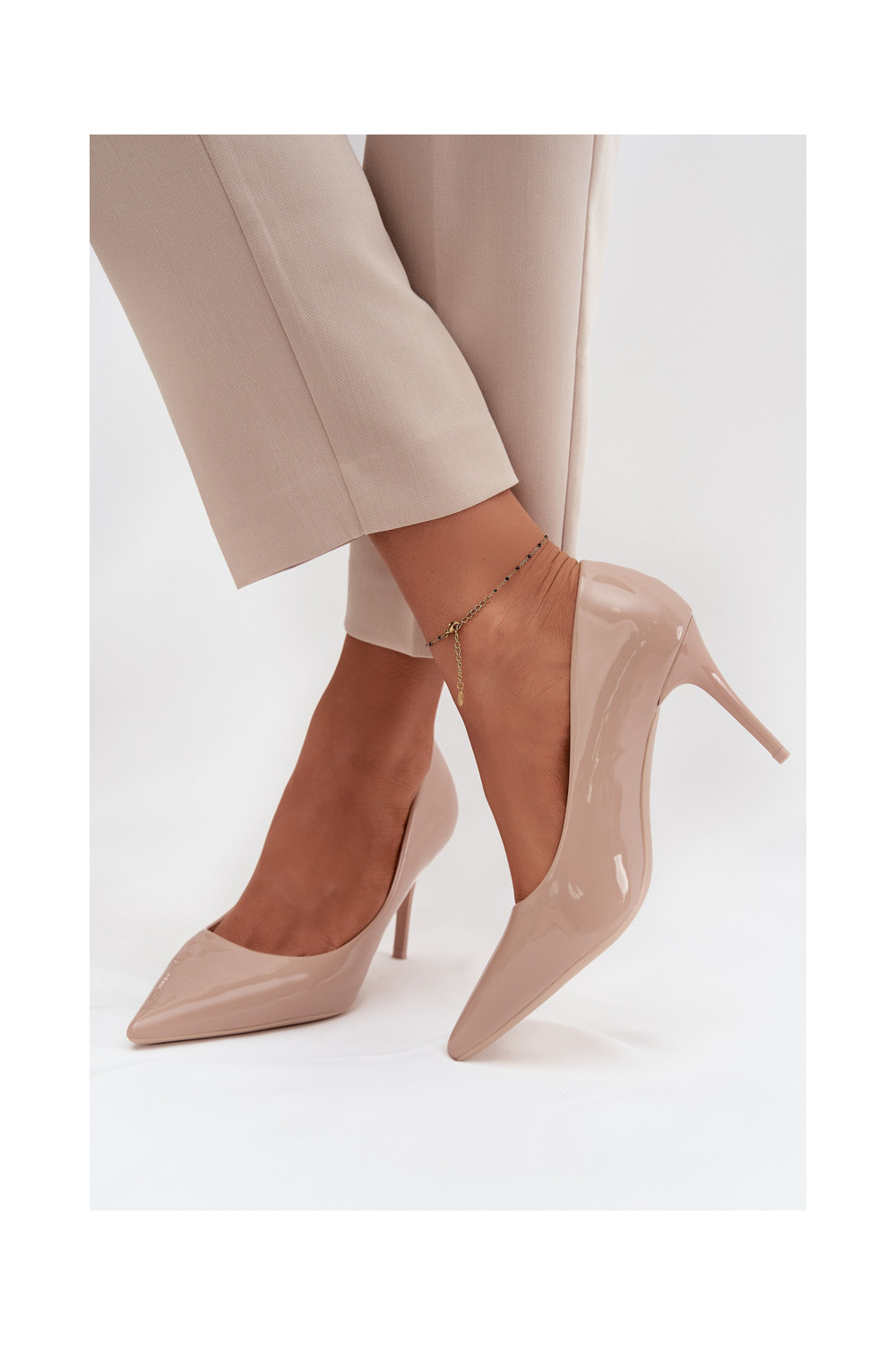 Jadira kõrged kontsad lakk-kunstnahast naistele teravaotsaga, liivakarva