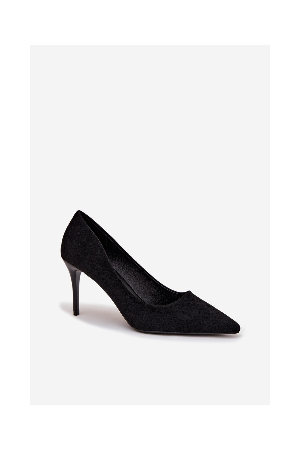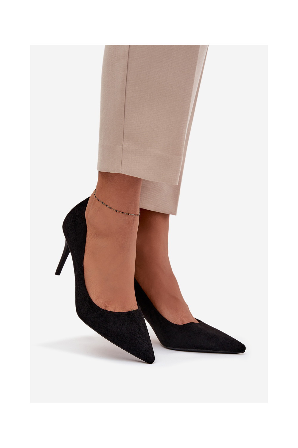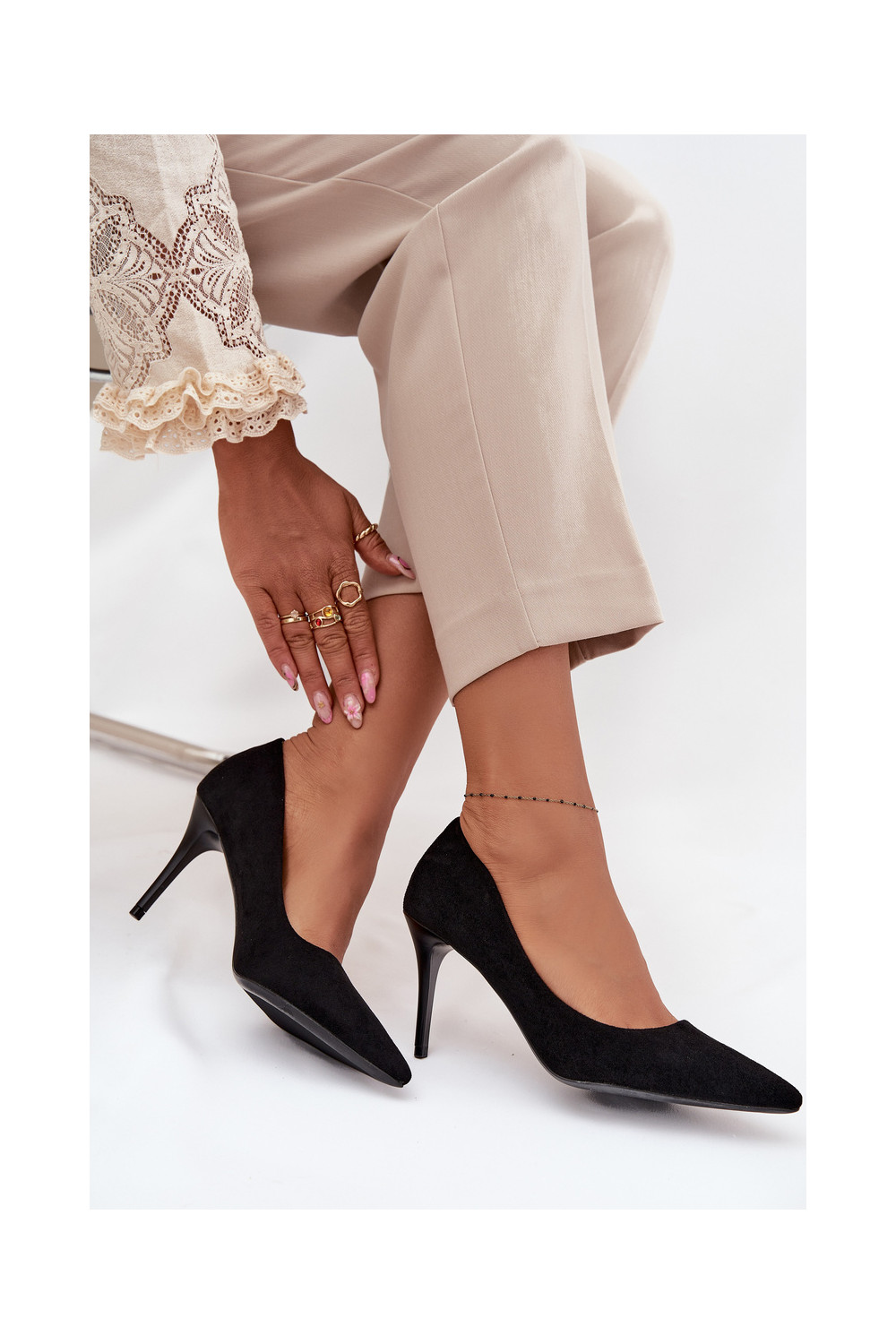 Sünteetilisest sametist kõrged kontsakingad naistele musta värvi Elvessa