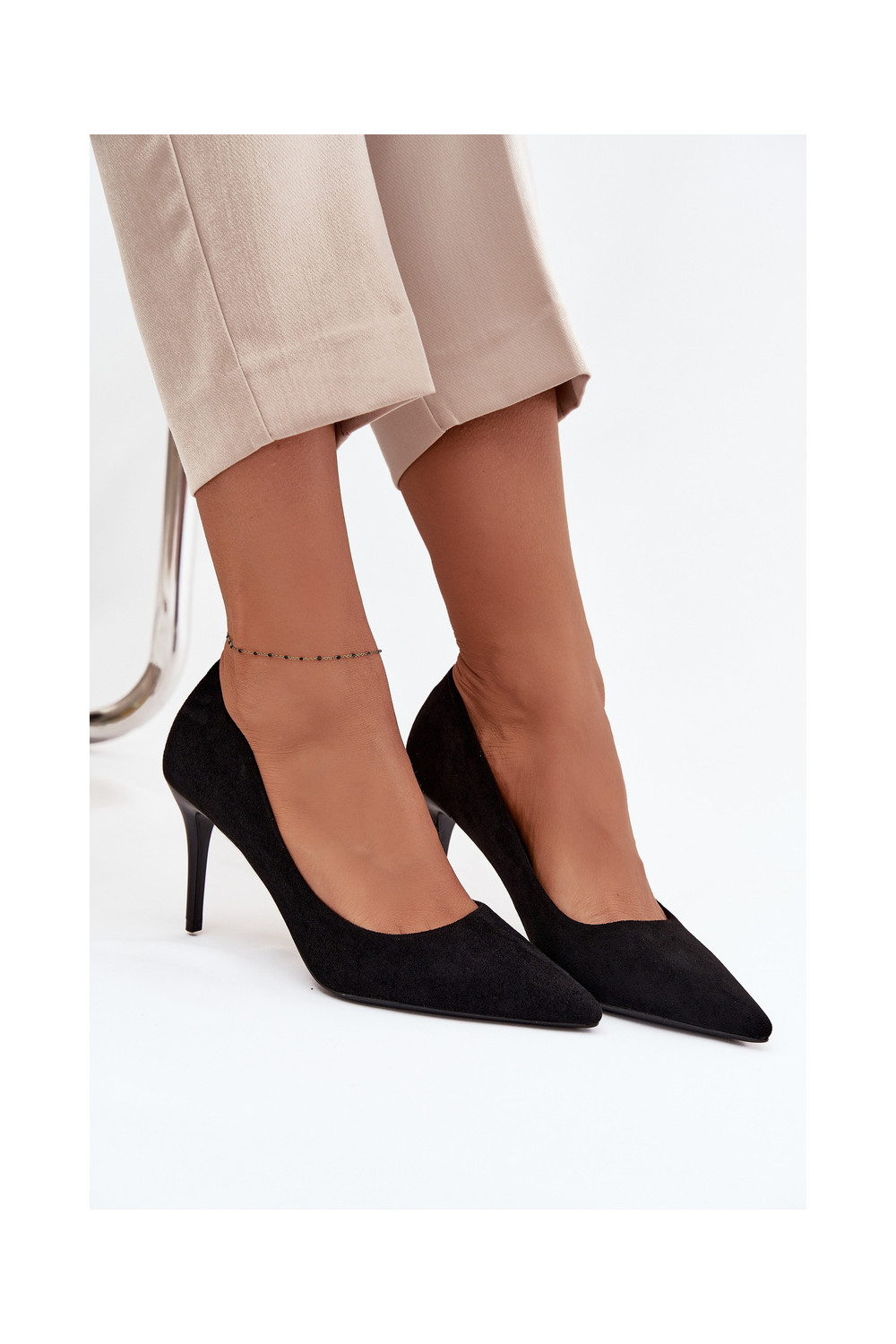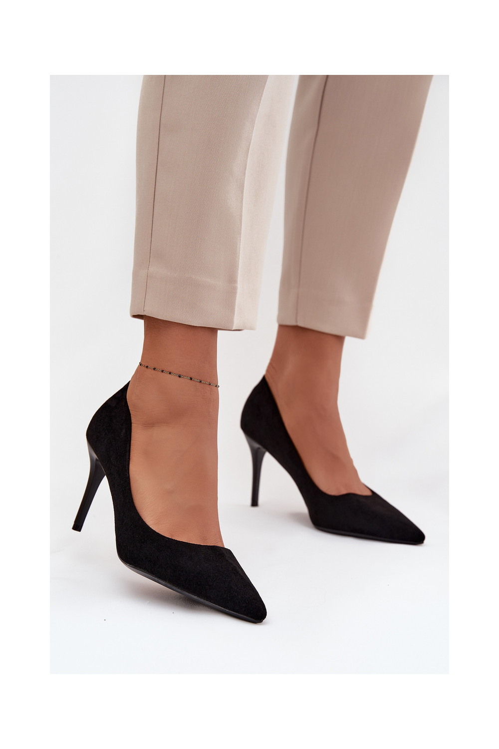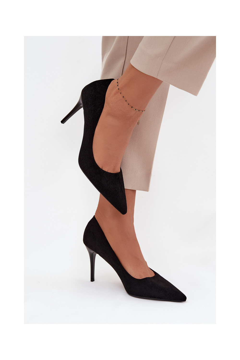 Sünteetilisest sametist kõrged kontsakingad naistele musta värvi Elvessa