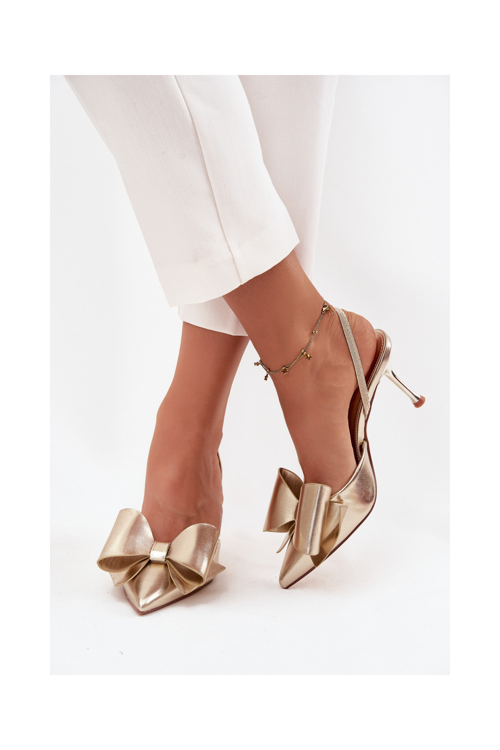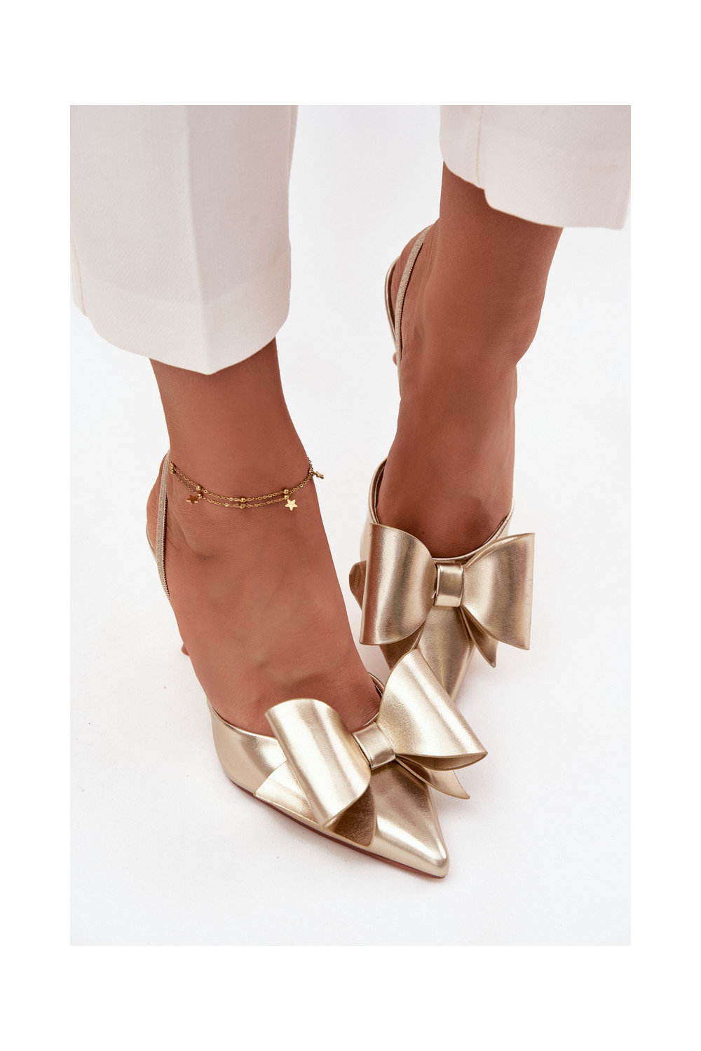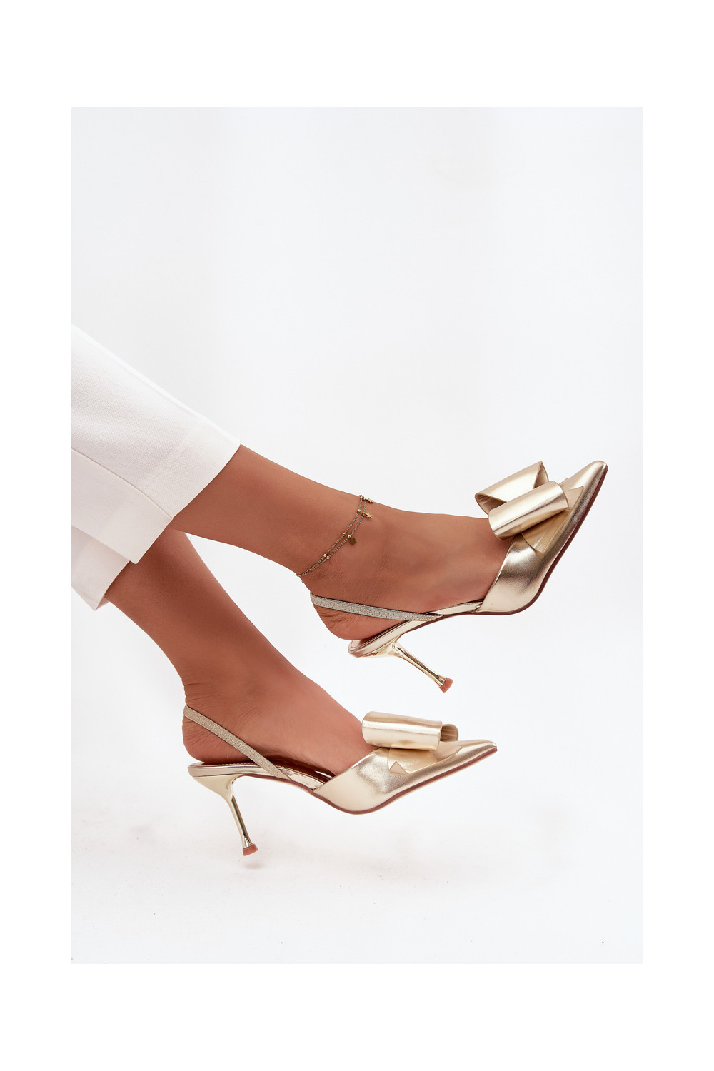 kõrge kontsaga Z Odkrytymi Piętami I Kokardką Kuldset värvi Eklevia
