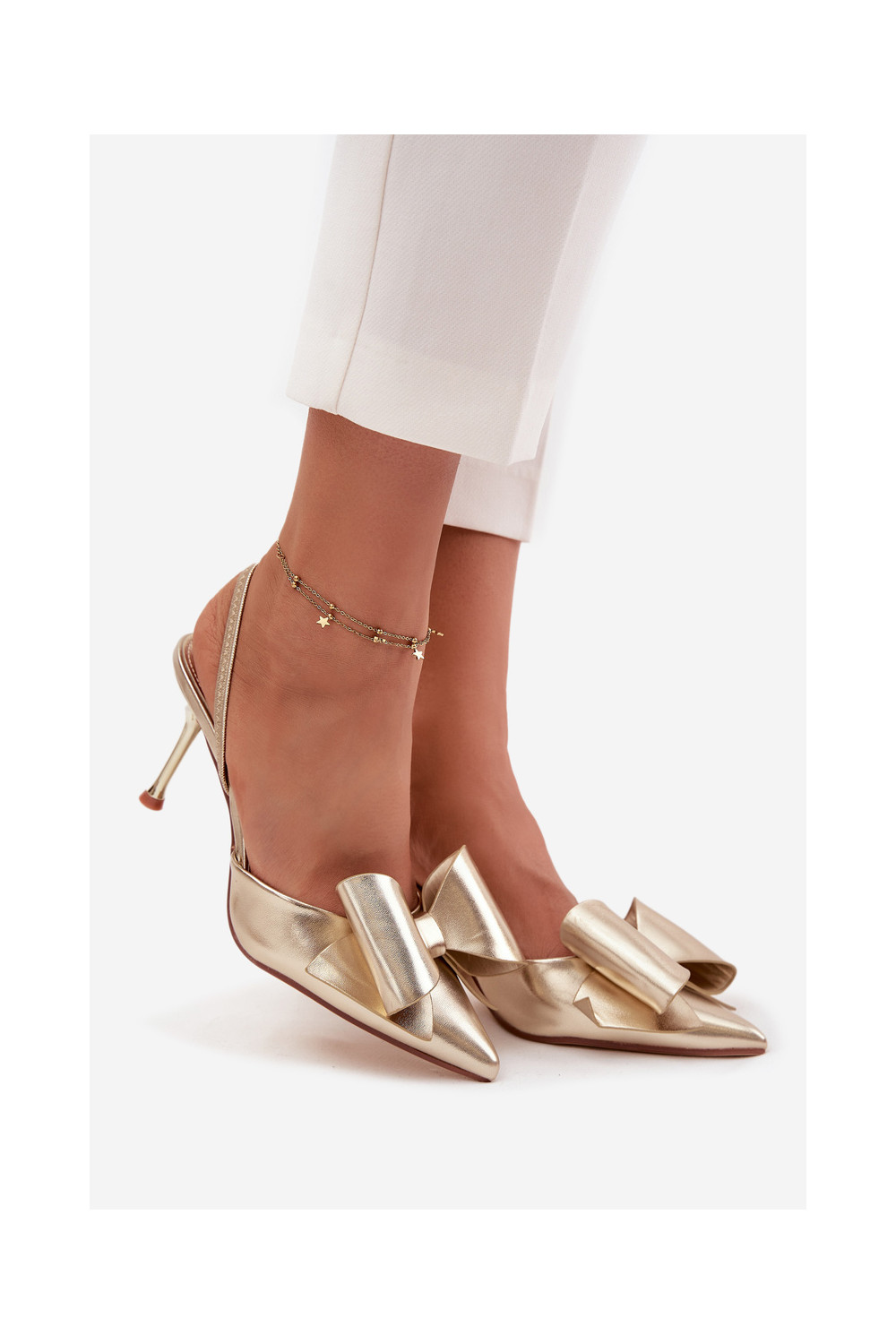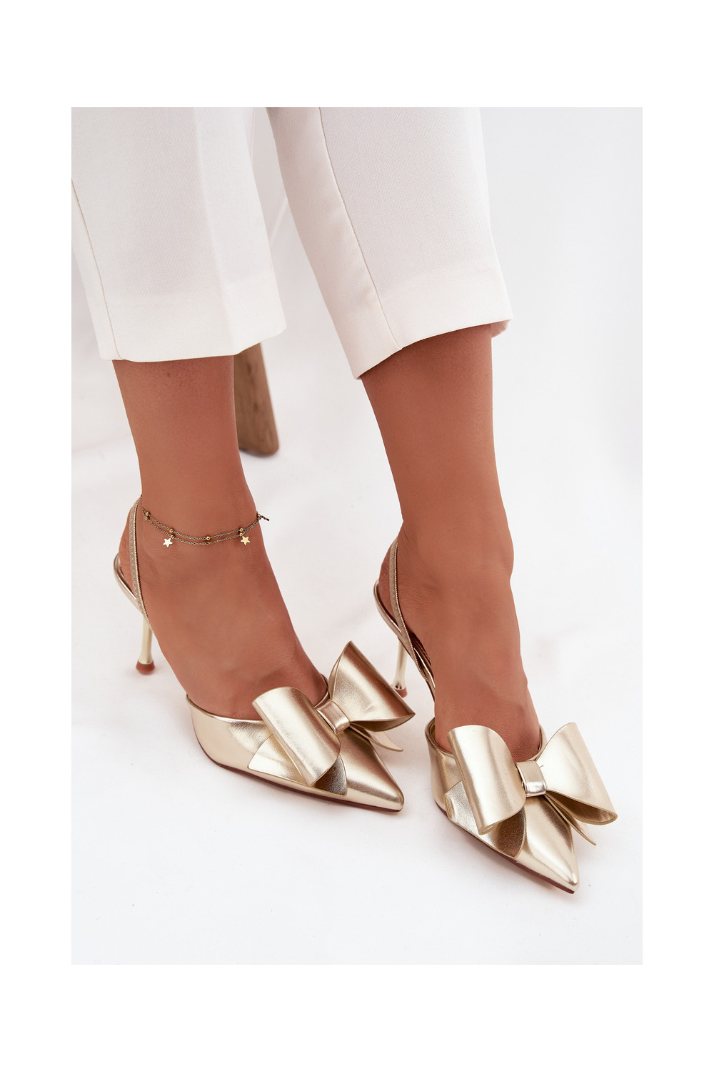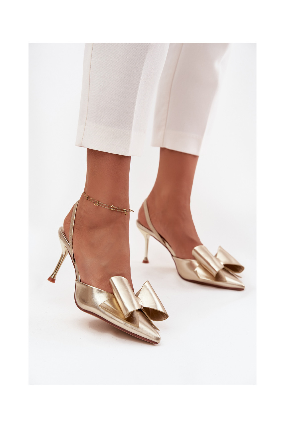 kõrge kontsaga Z Odkrytymi Piętami I Kokardką Kuldset värvi Eklevia